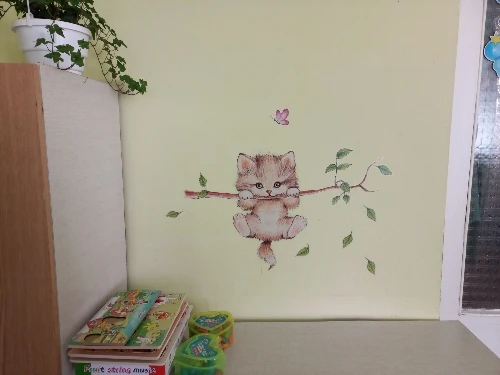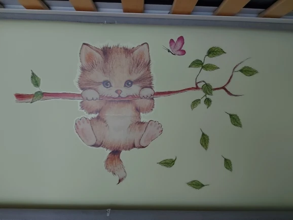 Красивая наклеечка, не маленькая и не большая, как раз над кроваткой ребёнка, красиво смотрится