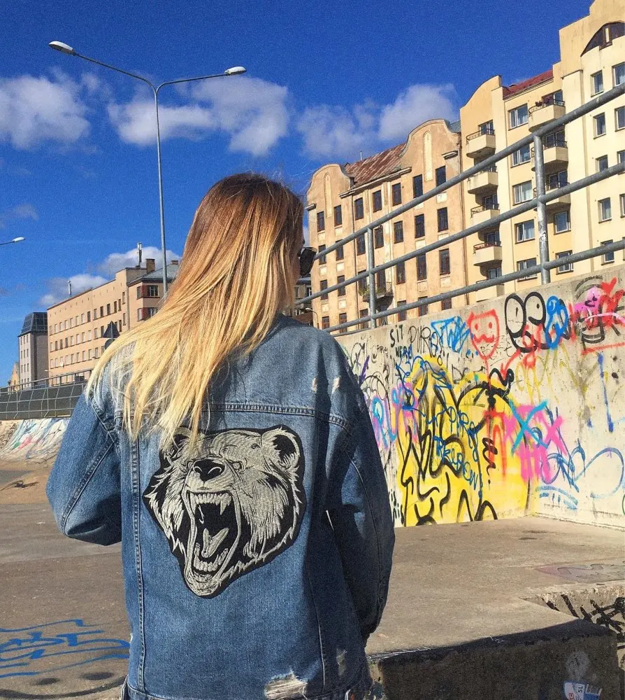 Нашивки с вышитой головой медведя, железные наклейки на куртку, декоративный значок