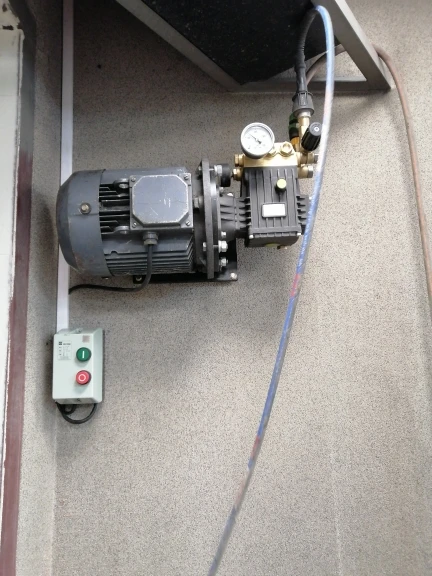 Информации по таким насоса мало, поэтому пишу. Поставили насос на двигатель аир100, 3 кВт, 1450 оборотов, через самодельный переходной фланец. Вал по диаметру и шпонке подошёл отлично. Пистолет присоеденили от каршера к7. Работает хорошо, тихо, мощности хватает, давит хорошо. Легко давит до 300 атмосфер. По ощущению мощней к7. По модели насоса не очень понятно заказывал 2014, на по факту на табличке написано 1814, на головке фрезеровано 1812, ну что взять китайцы.