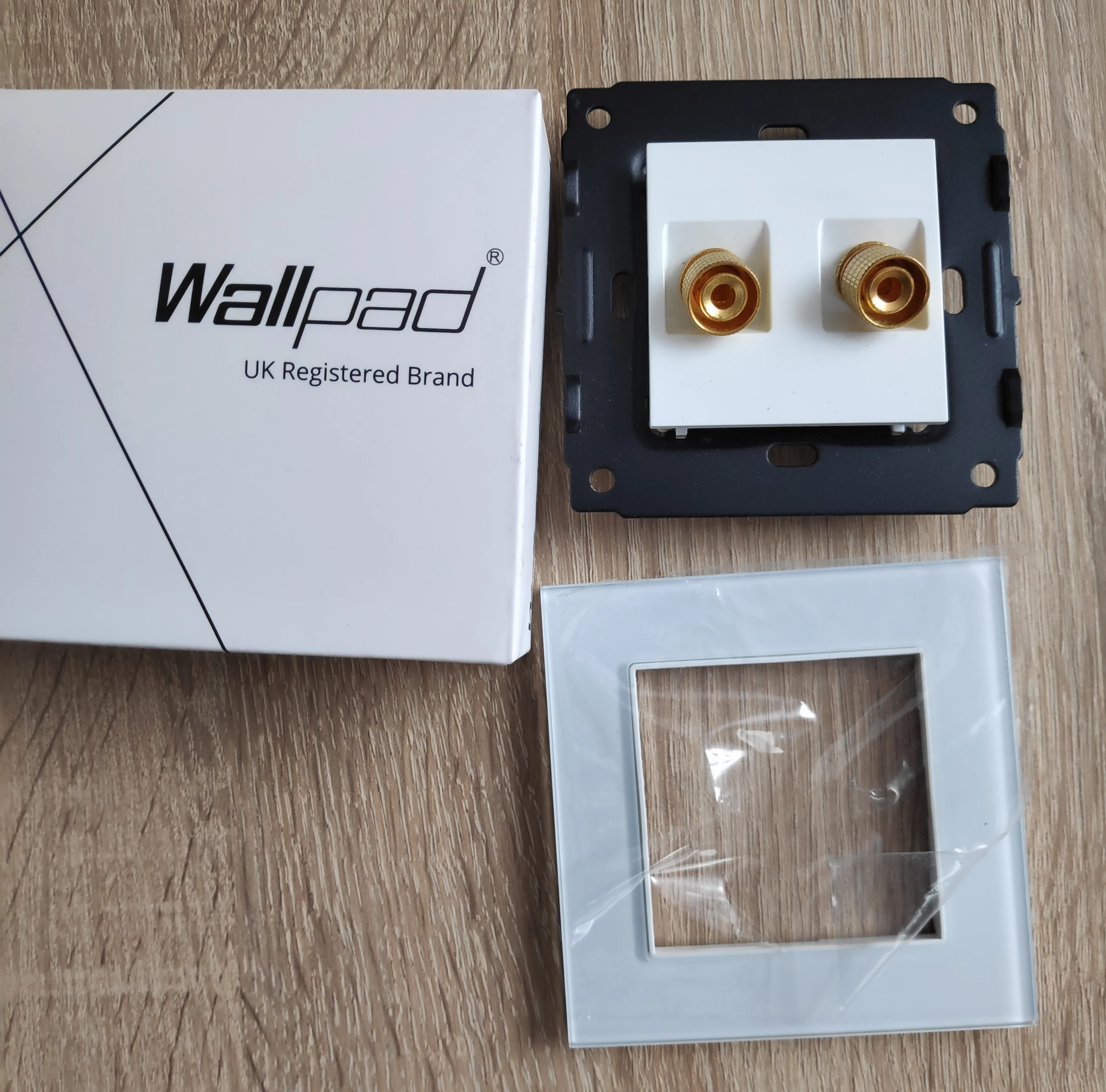 Настенная аудиорозетка, золотистая стеклянная панель, 2-контактный аудиоразъем 86 мм * 86 мм