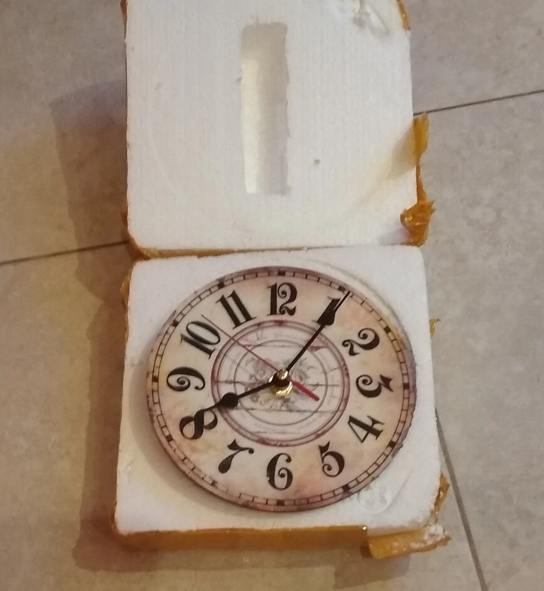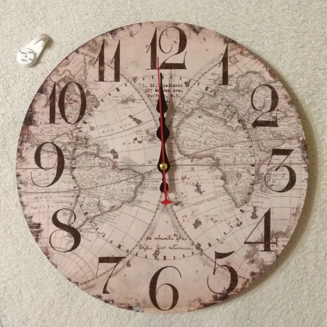 Заказ прибыл в Москву за 3 недели. Упакованы часы хорошо - в пенопластовую коробку-форму. Сняла звезду за корпус из ламинированного картона - до этого были со стеклянным корпусом, смотрелись солиднее (см. фотку, стоят на столе). Выбирала с картой на циферблате - пришли с каким-то невнятным цветком по центру - мне было важно чтобы по цветовой гамме подошли, но кому-то может и не понравится, что рисунок не тот, что заказали. Покупала на летней распродаже за 630 руб (самые маленькие, диаметр 15 см) с доставкой - был бы стеклянный корпус было бы по цене, но для картонки все же не для распродажи цена. К сравнению: стеклянные часы покупала в Москве на какой-то распродаже за 200 руб. Сломались после 5 лет эксплуатации. Считаю достойно. Буду надеяться, что эти картонные прослужат какое-то сравнимое время.