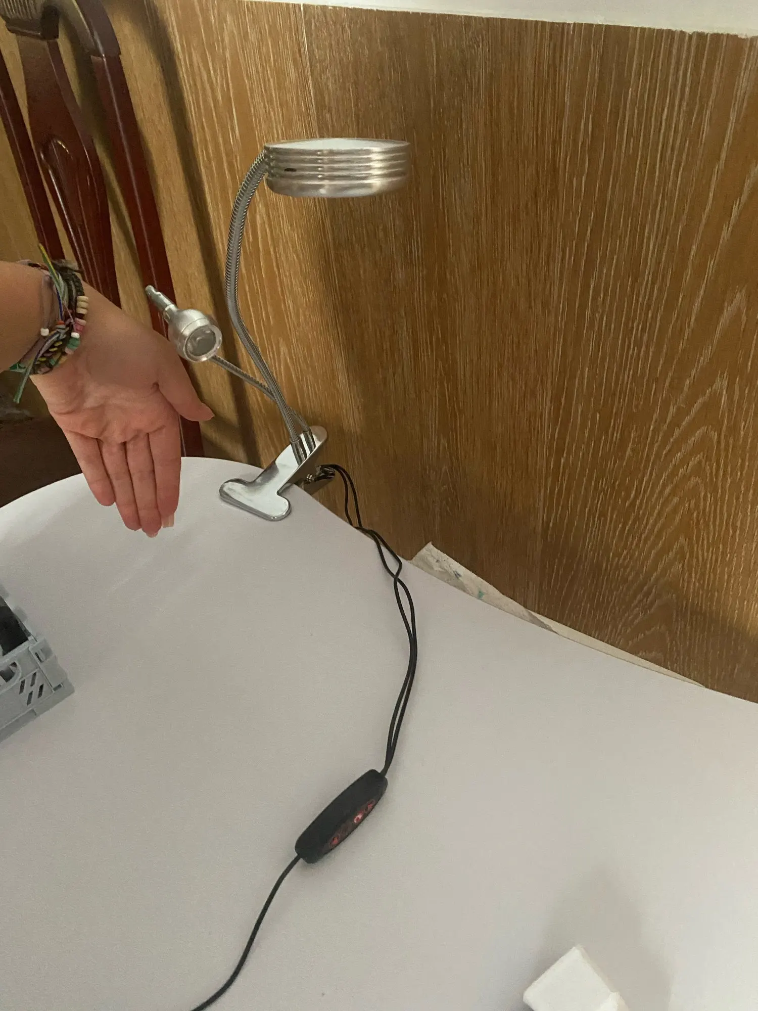 Компактная лампа. Удобная. Плохо--нет сетевой вилки.