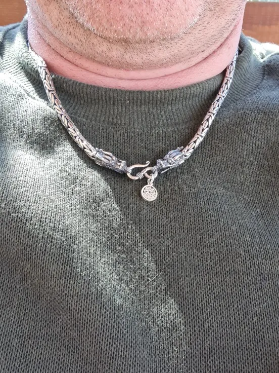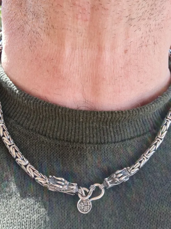 Настоящее чистое серебро 925 пробы, мужское ожерелье с двойными головками дракона, Винтажное колье ручной работы с ключицей, мужское ювелирн...