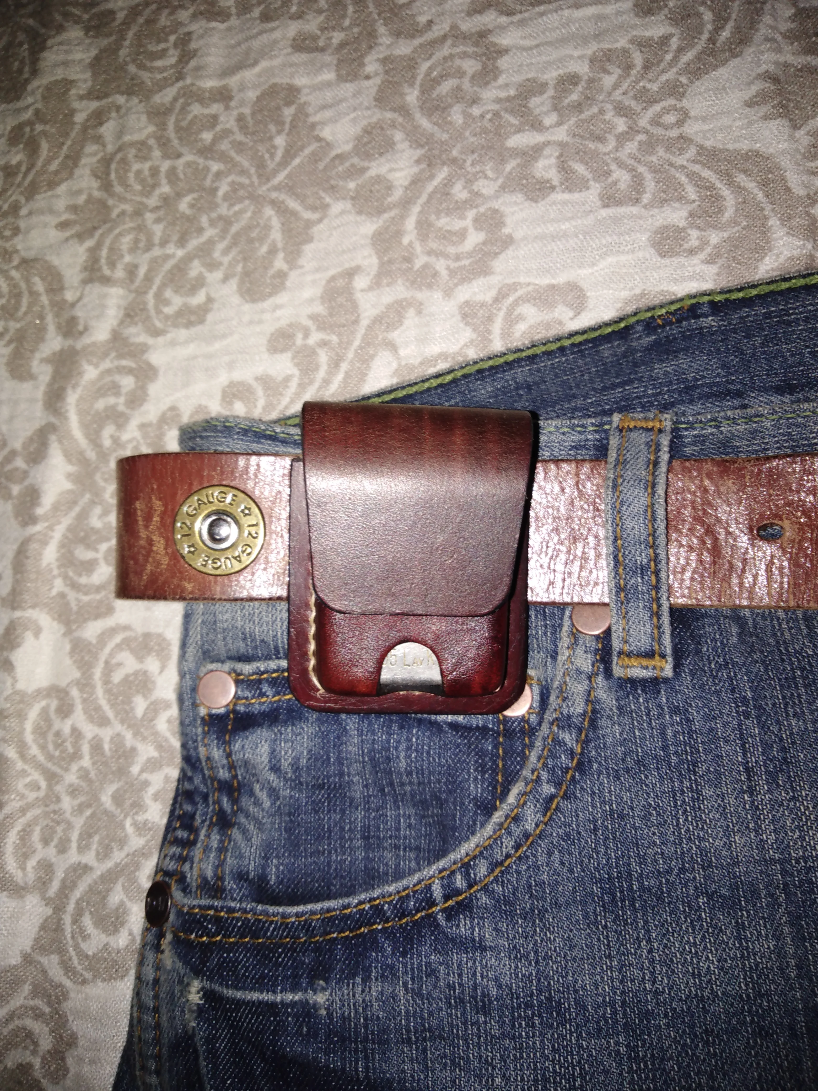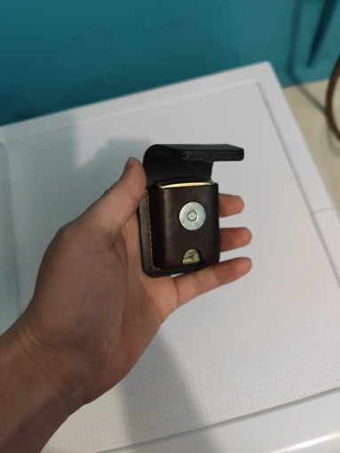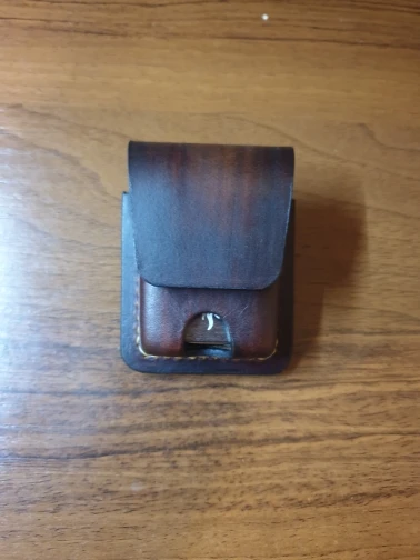 Всё отлично. Выглядит чехол лучше, чем на фото. Кожа натуральная и толстая. Зажигалка сидит достаточно свободно. Петля под ремень узковата. 43 мм влезает с трудом (потом сядет, но ремень пошире одеть уже не выйдет). Упаковано было как надо.