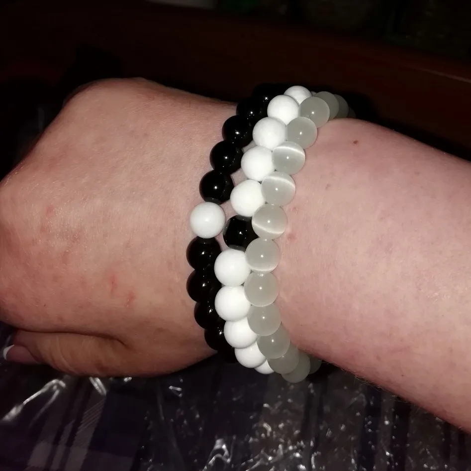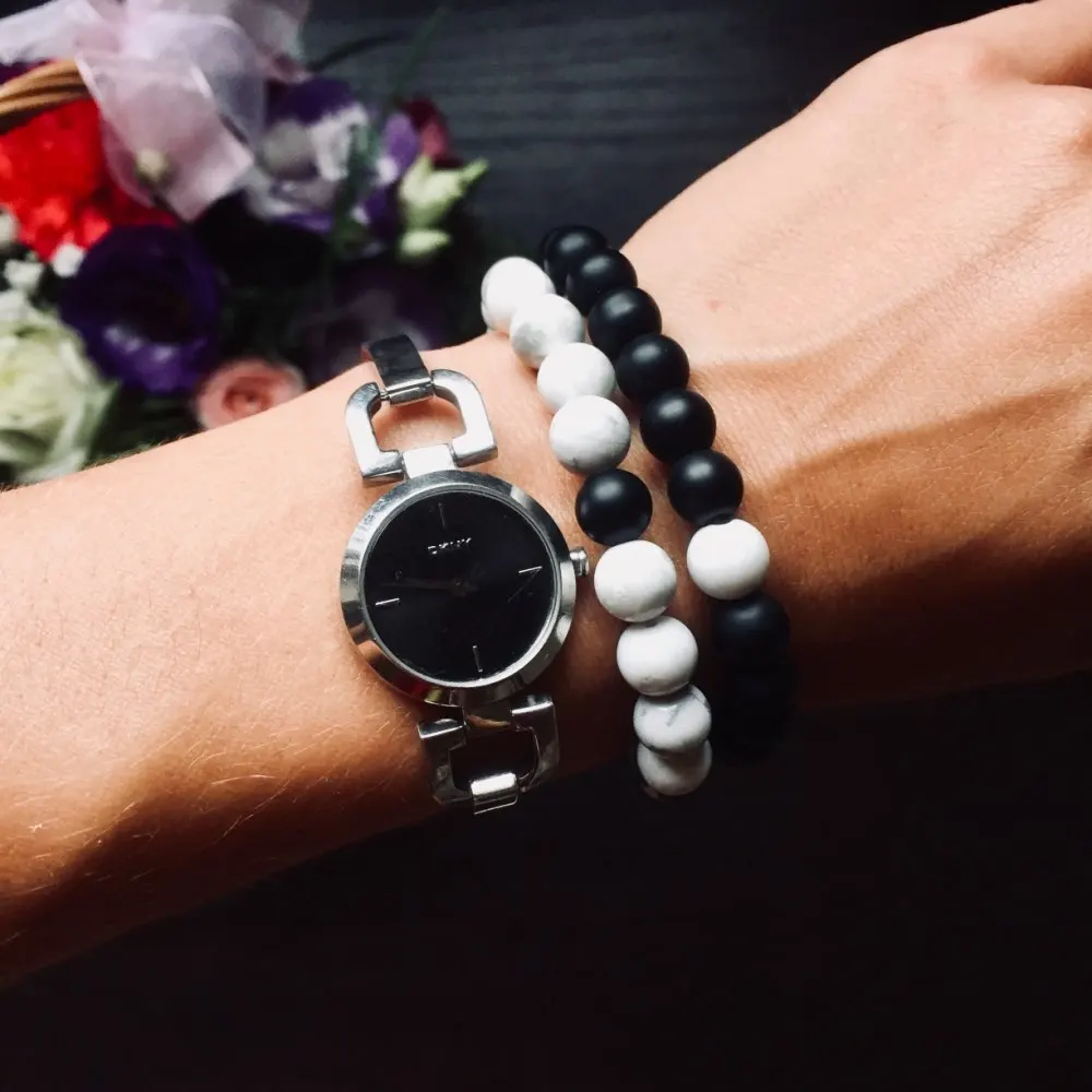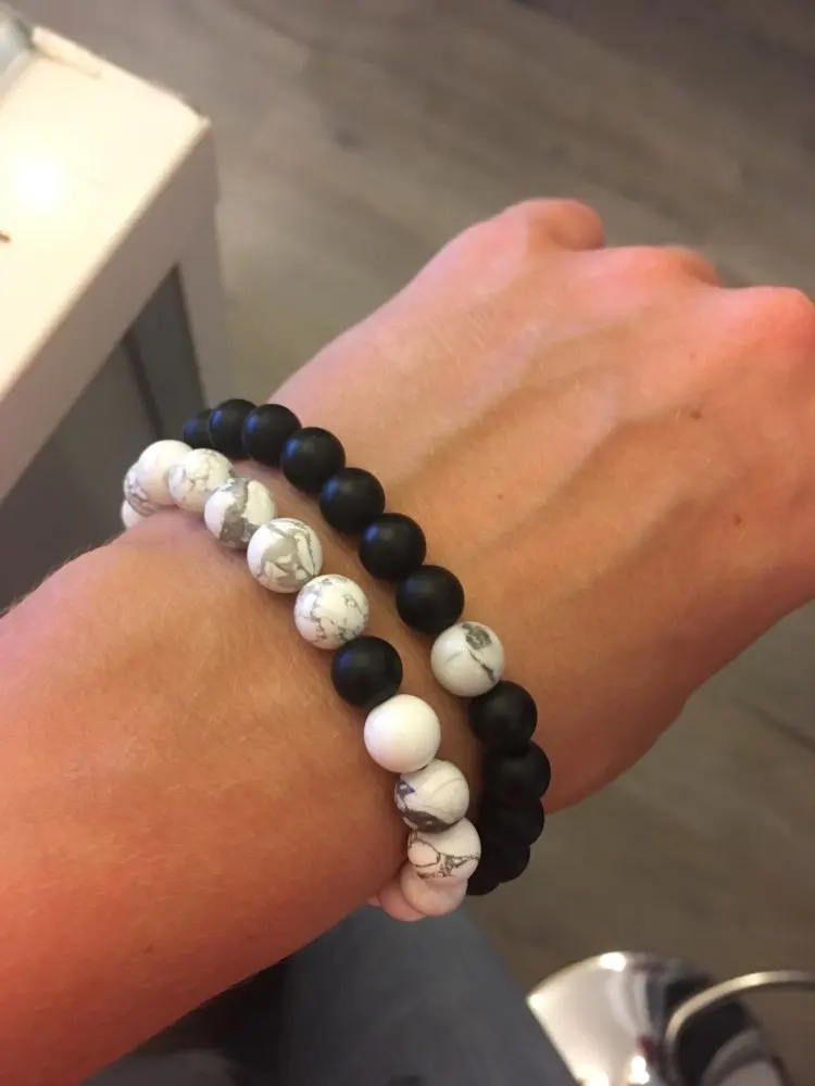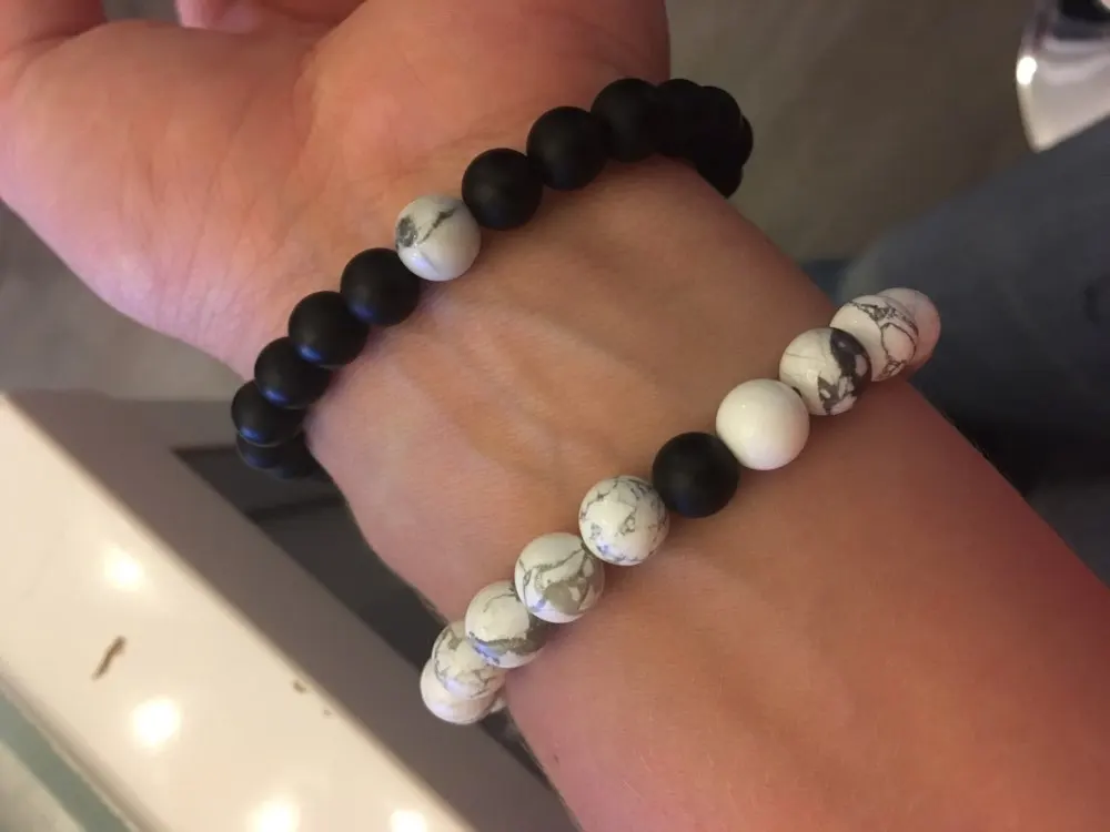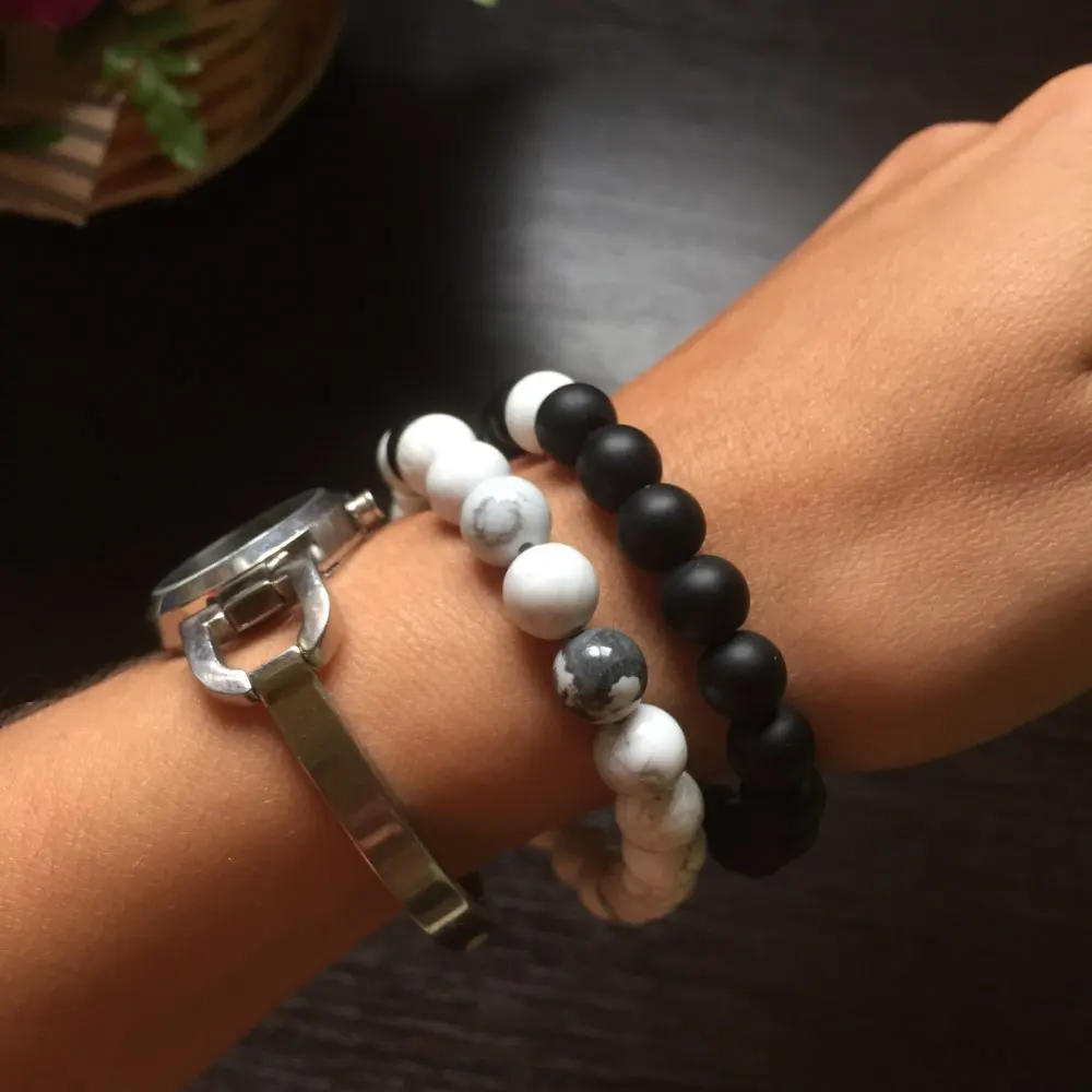 Натуральный черный оникс/матовый оникс/Tridacna/белый браслет с бусинами из камня Howlite, эластичная веревка, цепочка, мала браслеты для мужчин и ж...