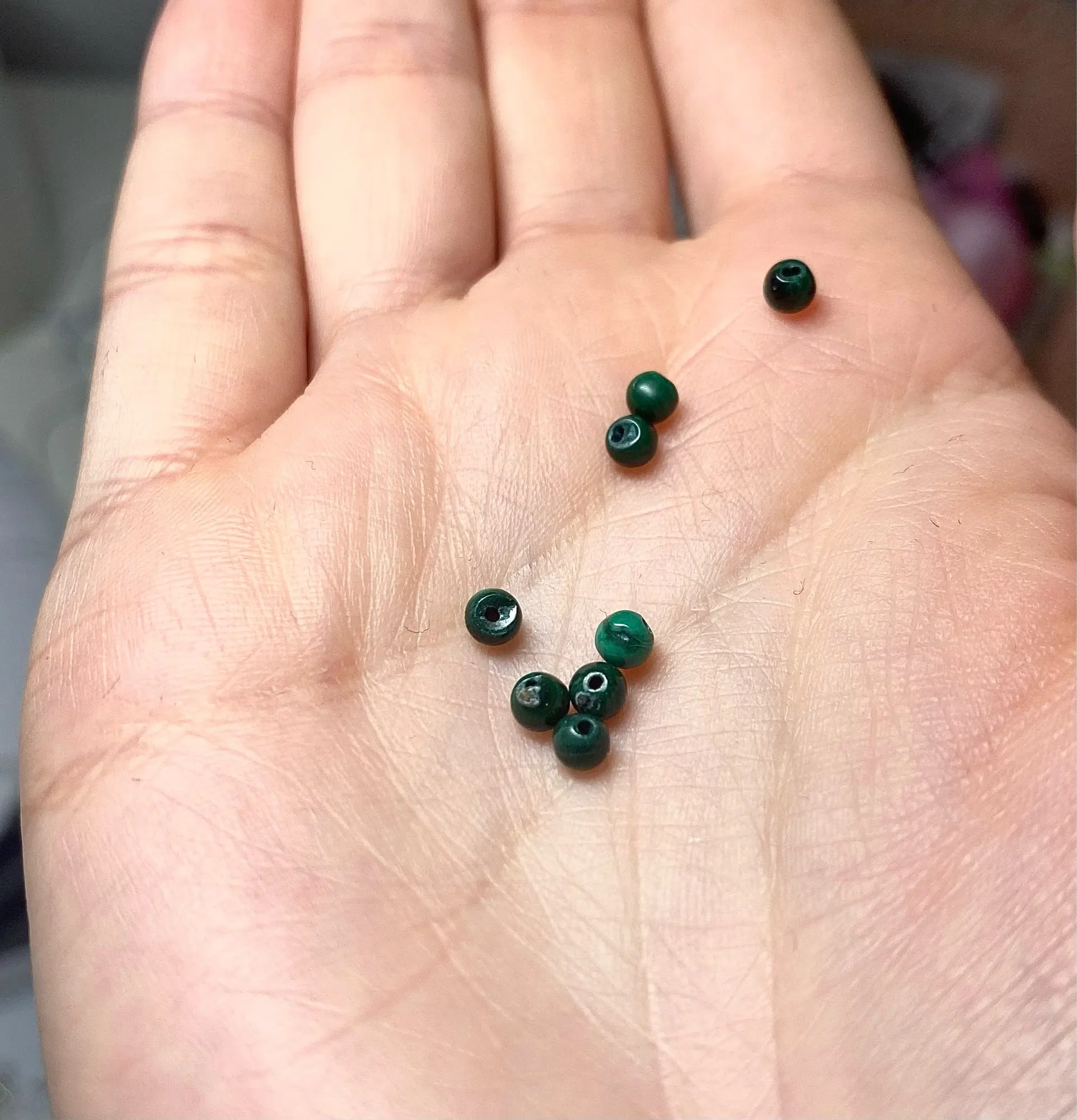 Натуральный малахит, небольшие круглые бусины 3 мм