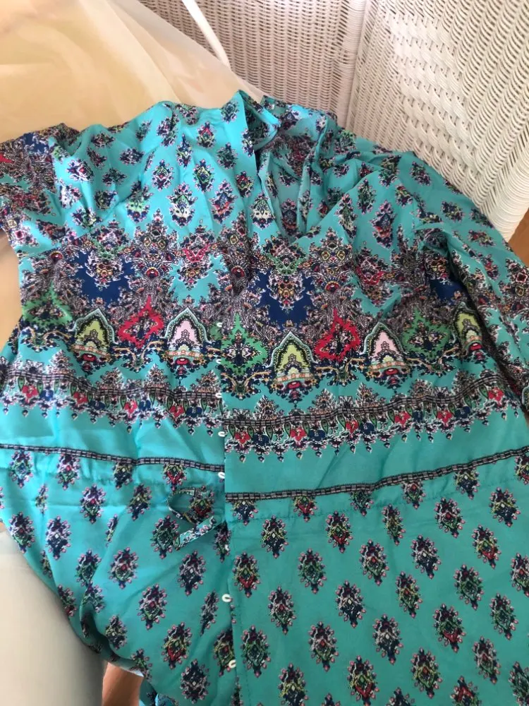 Очень приятная ткань. Хоть и синтетика, но ощущается как хлопок. Я на 44-46 взяла xl, свободненько, как на модели. L тоже будет неплохо.