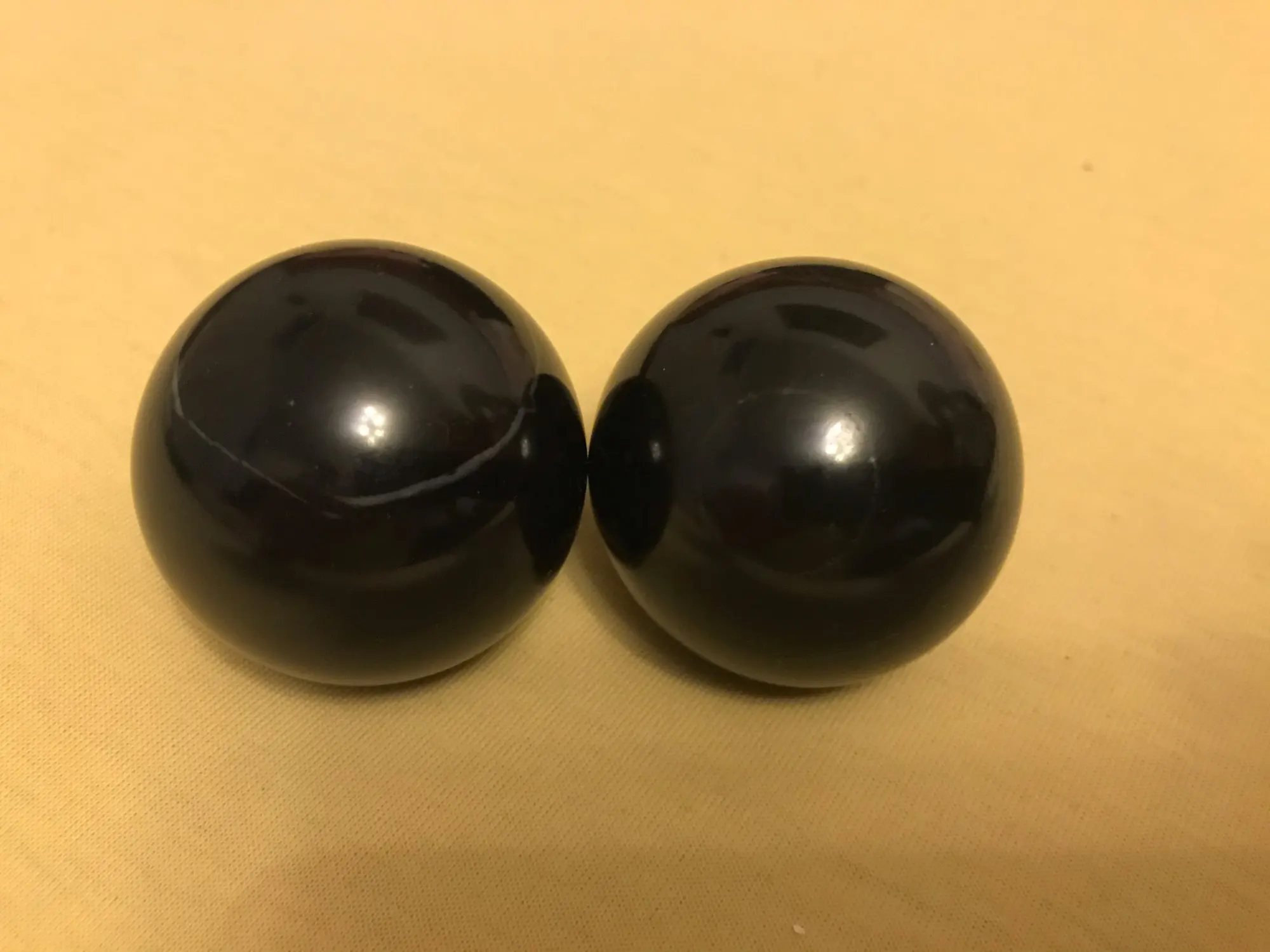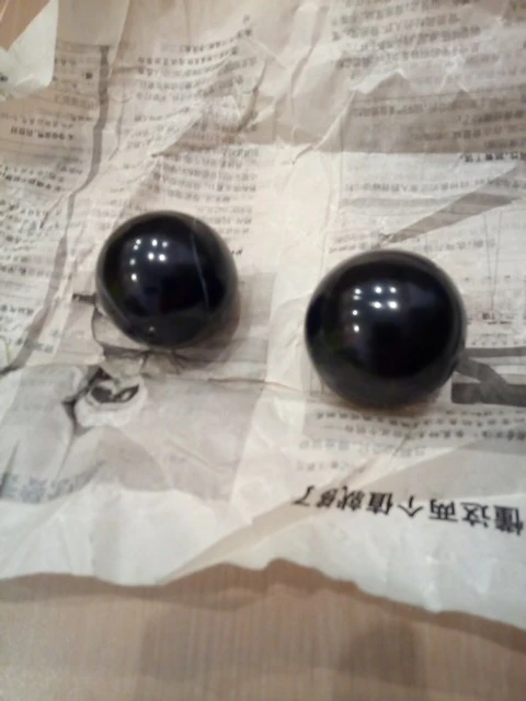 Заказал уже вторую пару. Шары из второй пары (на фото сверху) такие же по размеру и весу. На одном шаре попался не совсем удачный рисунок камня. Но шары ровные без сколов и дефектов. Заботливо завернуты в китайскую газету и упакованы в два больших пупырчатых пакета. Доезжают нормально и быстро. Рекомендую.