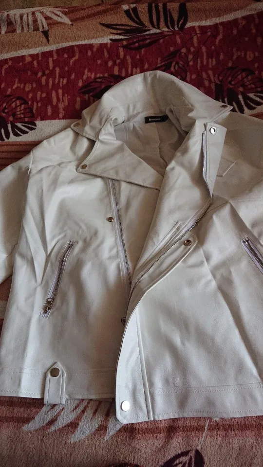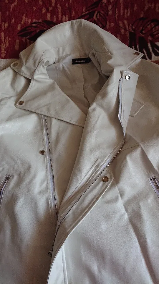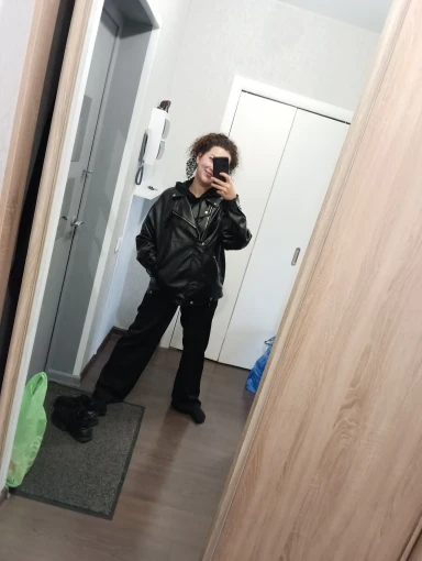 отправляли долго, но пришла быстрее всех. я покупала до всех отзывов, в слепую.. и если честно, 2900 она не стоит, 2000 максимум. слишком тонкая, но свой вайб имеет. мерила на улице с толстовкой, на минус 2 катит. оценка 3 за материал. он слишком тонкий за эту цену, клеёнка