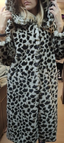 Качество меха визуально хорошее. Первый раз заказала на ОГ 120см. - оказалась впритык. Перезаказала на 2 размера больше, теперь велика. Надо худеть или поправляться - шутка.