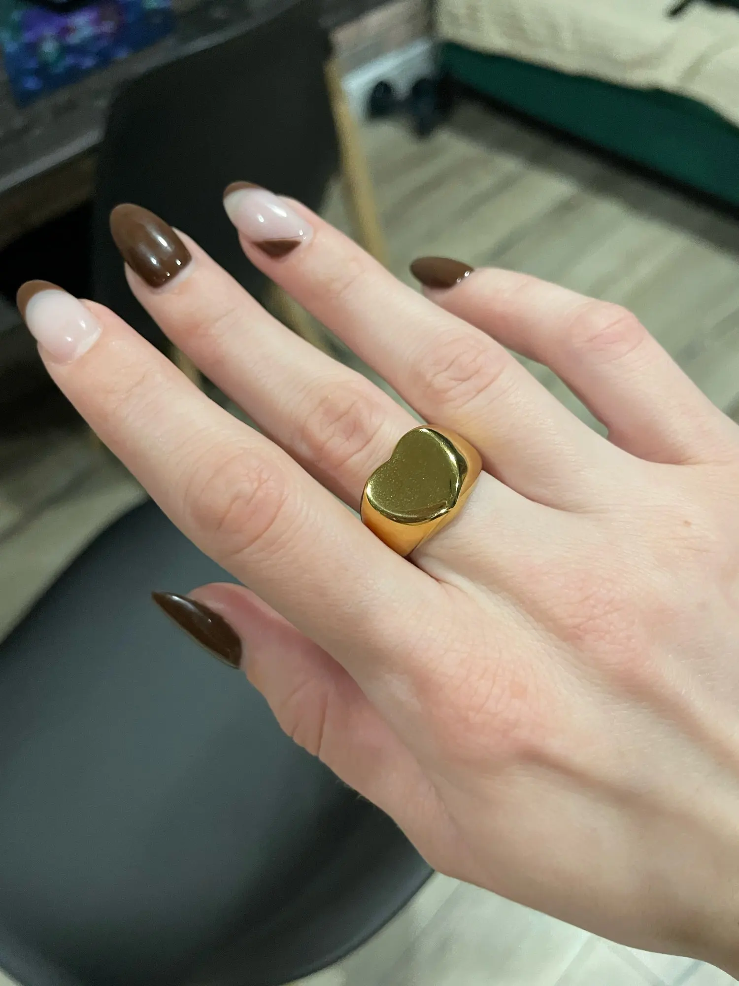 Нержавеющая сталь 18k позолоченные не тускнеет Минимальный сладкий, ювелирное изделие в подарок для верхняя стереоскопический золотого цвета с принтом «сердце», «Любовь кольца для Для женщин