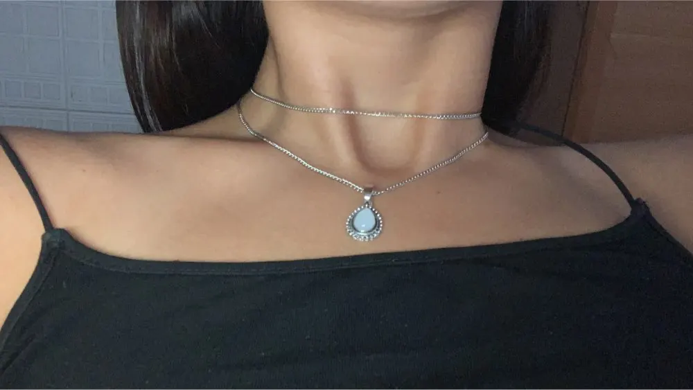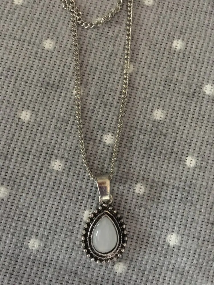 New vintage silver color drop stone pendant necklace women girl jewelry gifts N0045