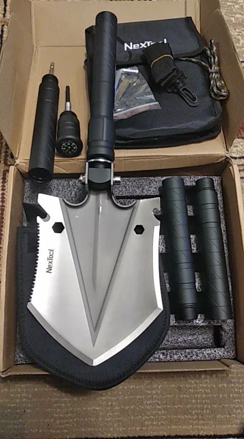 Заказываю второй раз, в отличии от первого (более месяца в неведении) этот заказ пришел за 5 дней от оплаты до получения. Купил на распродаже 11.11.2020 за 2700 со скидкой по купонам. Товар полностью соответствует описанию. В машине места занимает не много. Лезвие лопаты нужно подточить. Фото от первого заказа (подарок шурину), но всё соответствует.