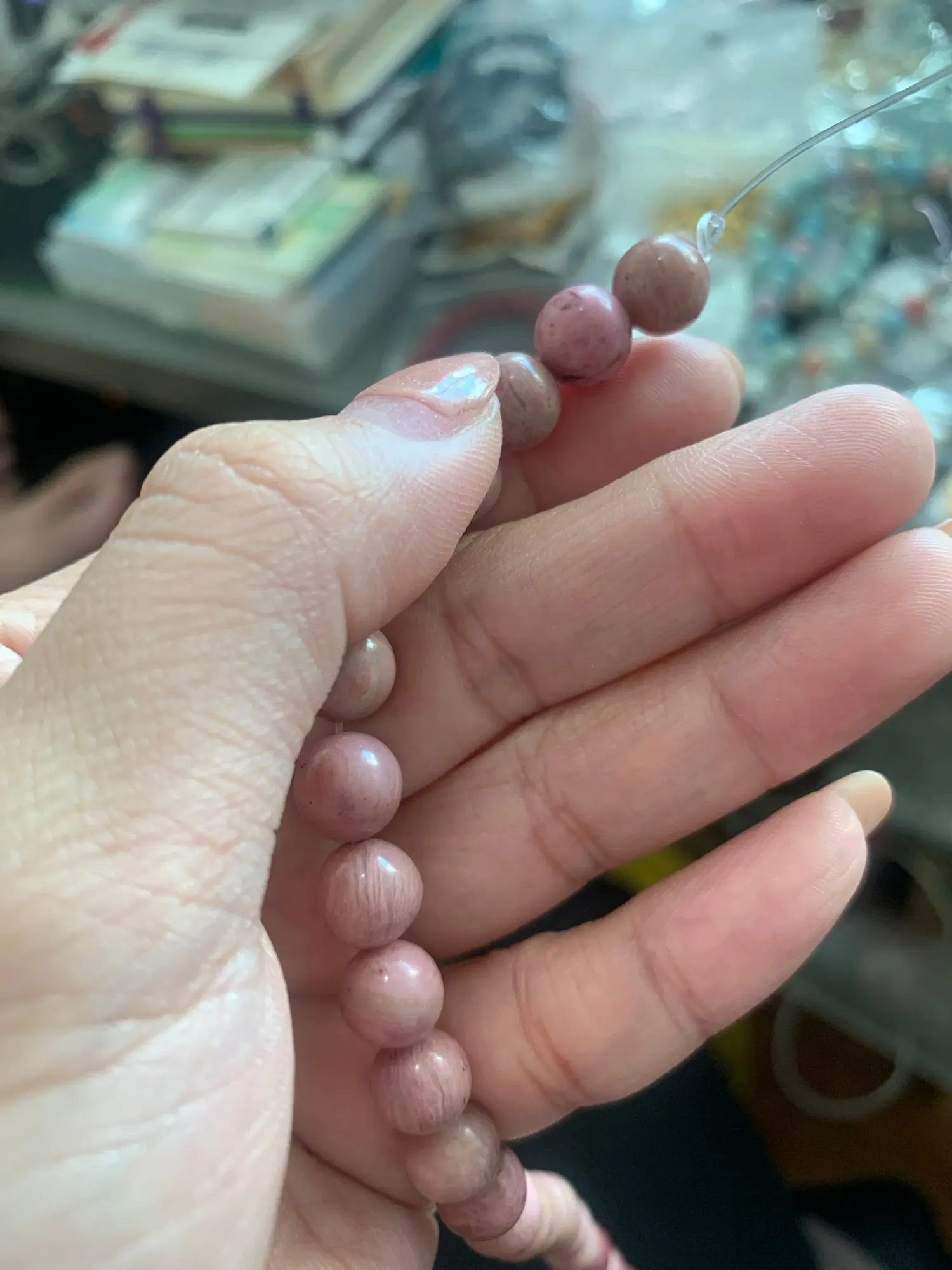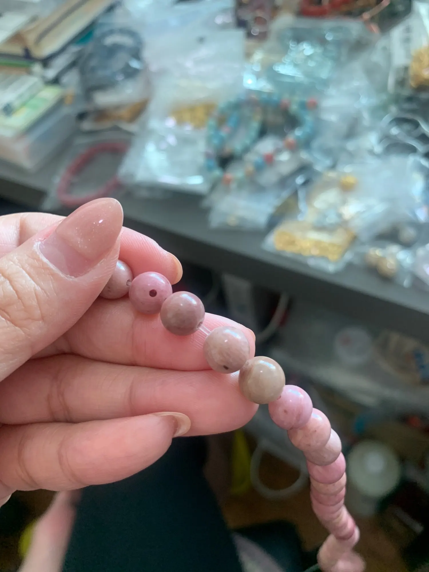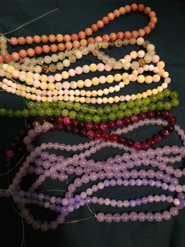 Бусины дошли до Алматы за 37 дней, бусинки красивые ровные, но по количеству не соответствует заявленному 10 мм должно быть 38 штук , в действительности 37 штук, 6 мм должно быть 63 штуки но прислали 58 штук, только 8 мм прислали больше на 2 штуки ,чем заявлено , цвет бусин в действительности более блеклый чем на фото, но это наверное особенность камня , потому , что на моих фотографиях, цвет тоже ярче , чем в действительности,но все же за скорость доставки 5 звезд.