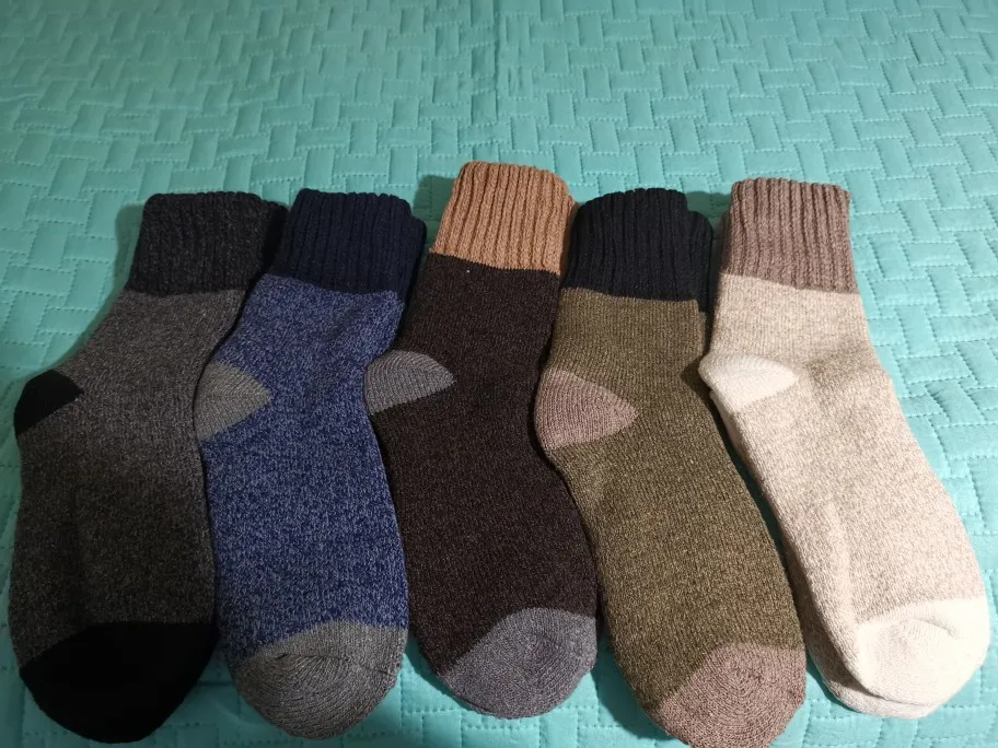 Носки HSS мужские хлопковые, брендовые толстые теплые черные термоноски в стиле ретро, 5 пар, Осень-зима