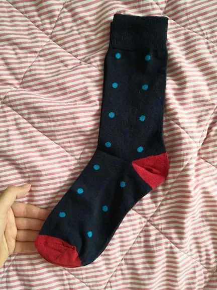 Носки хорошее, но не очень плотные, рисунок чёткий, запаха нет, на размер 44 хорошо и растянутся ещё с лёгкостью
