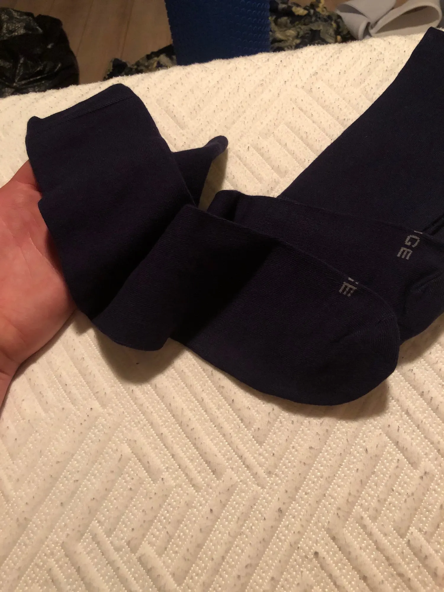 Качество носков хорошее. Заказывала синие, но они очень темно-синие, почти черные До Москвы шли 11 дней. Магазин и продавца рекомендую.