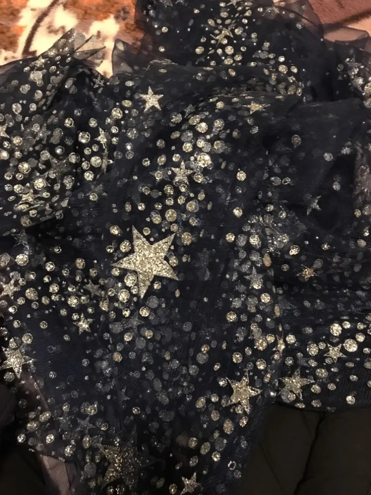 Новая темно-синяя черная сетчатая блестящая сетка со звездами, кружевная ткань 120 см, широкая полоска ткани для шитья одежды, платья, занавесок, аксессуары SM243
