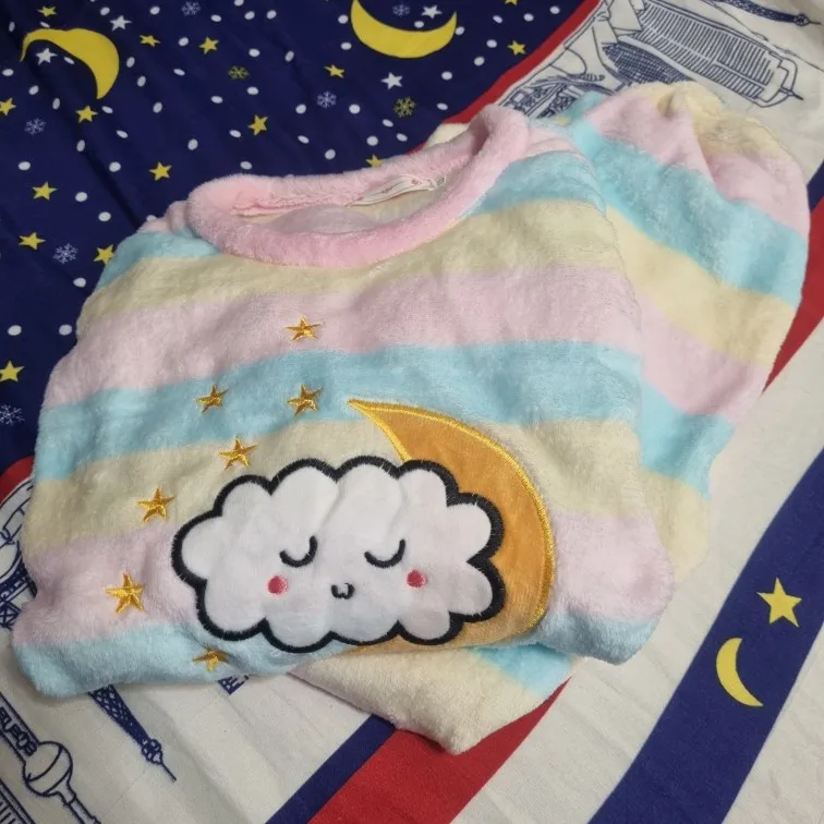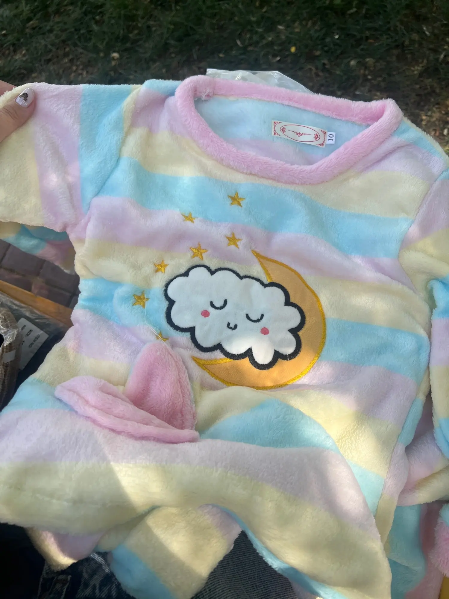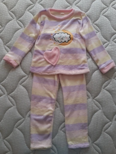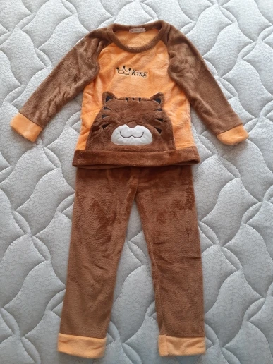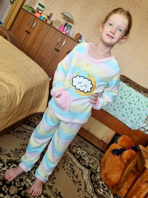 Пижама мягкая, уютная. Соответствует фото и описпнию. На ребёнка 4 лет взяли размер 120-130, специально побольше. Велик на 1-2 размера, как и предполагали. Девочка у нас не худенькая, рост 105 см. Пришло меньше чем за месяц в Мск. Спасибо магазину все супер