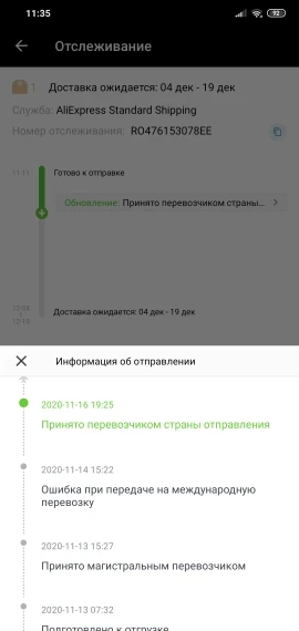 отправили в день заказа но товар не прошел на международные перевозки и был возвращен продавцу. деньги продавец согласился вернуть. продавец отвечал долго очень расстроились,хотели сделать подарок ребенку на новый год,но увы...