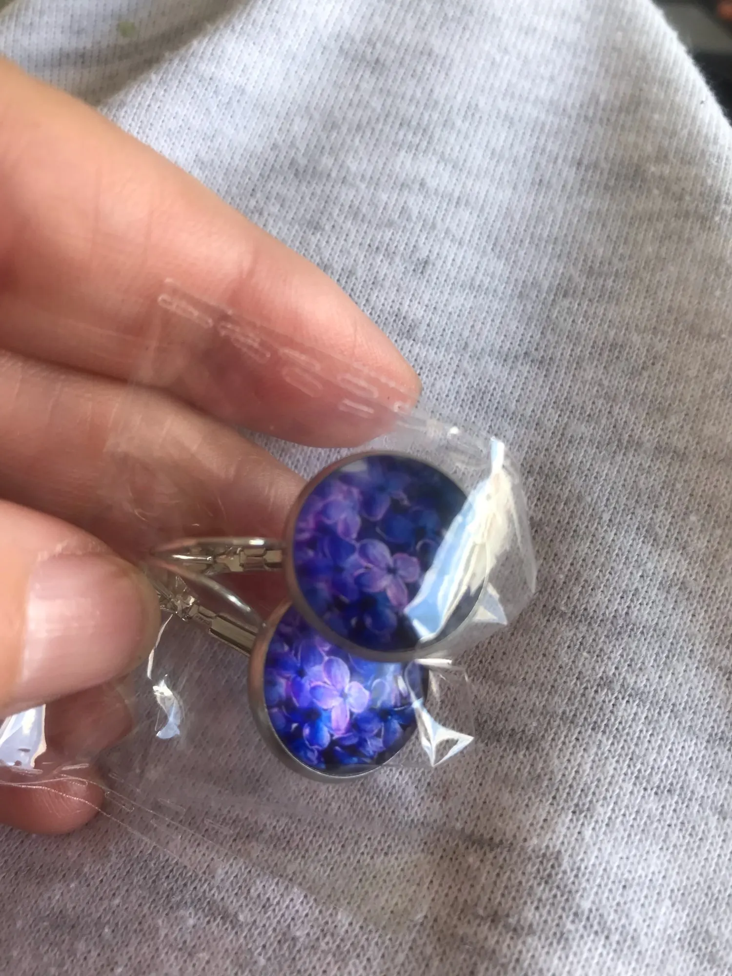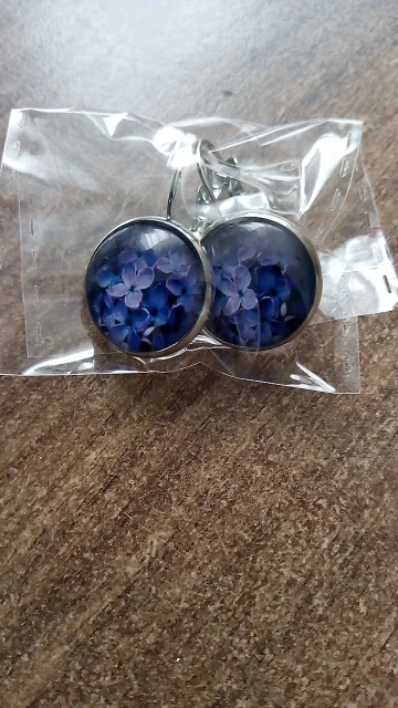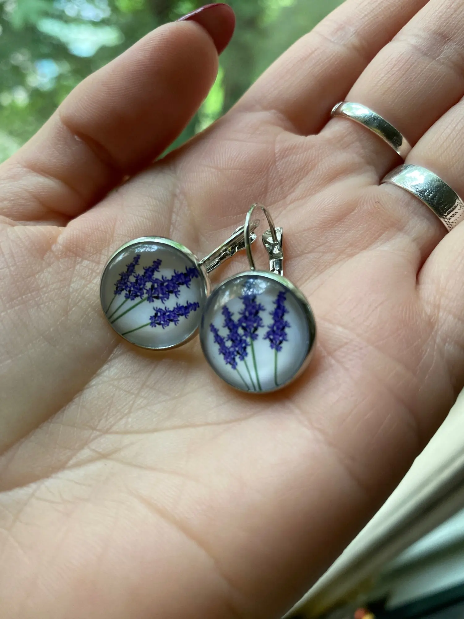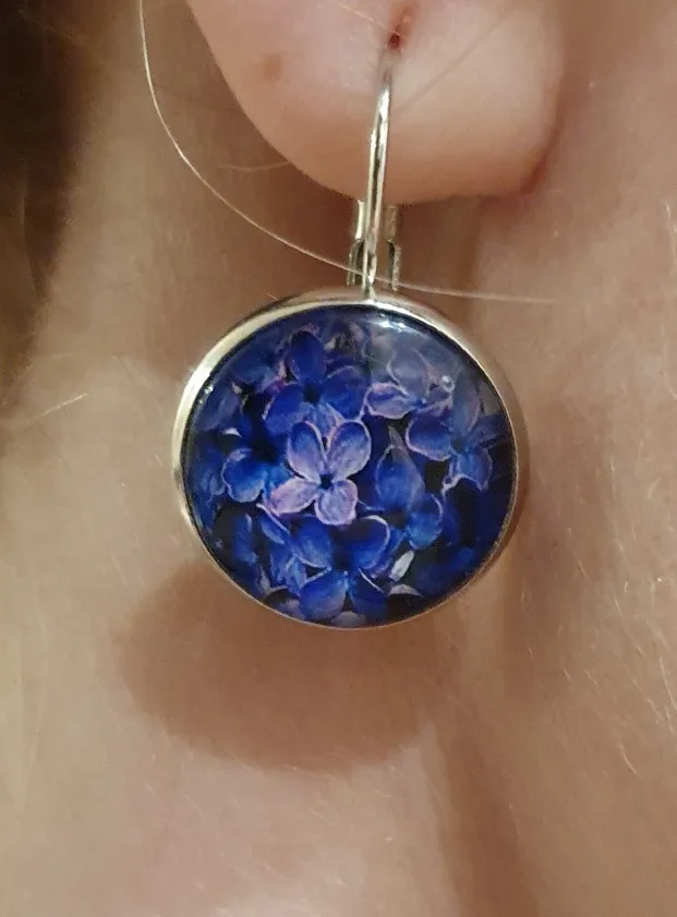 Новые красивые круглые стеклянные выпуклые серьги с фиолетовыми цветами лаванды и растениями, ювелирные изделия
