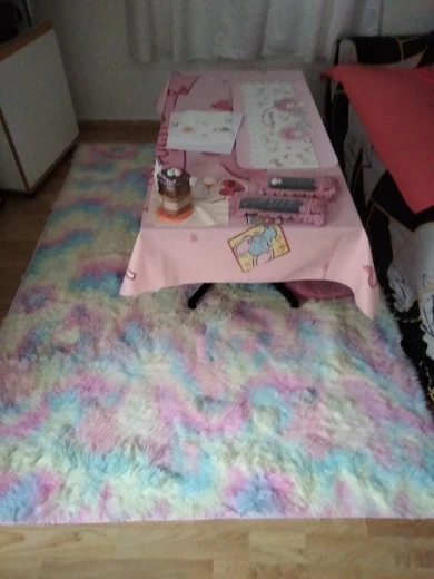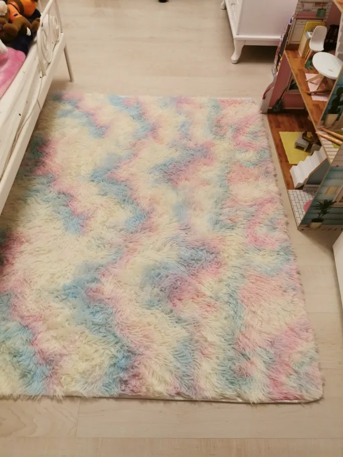 Отличный ковёр, конечно не такой привычный, основа тонкая, но на полу не скользит. Можно использовать как покрывало на диван или кровать.
