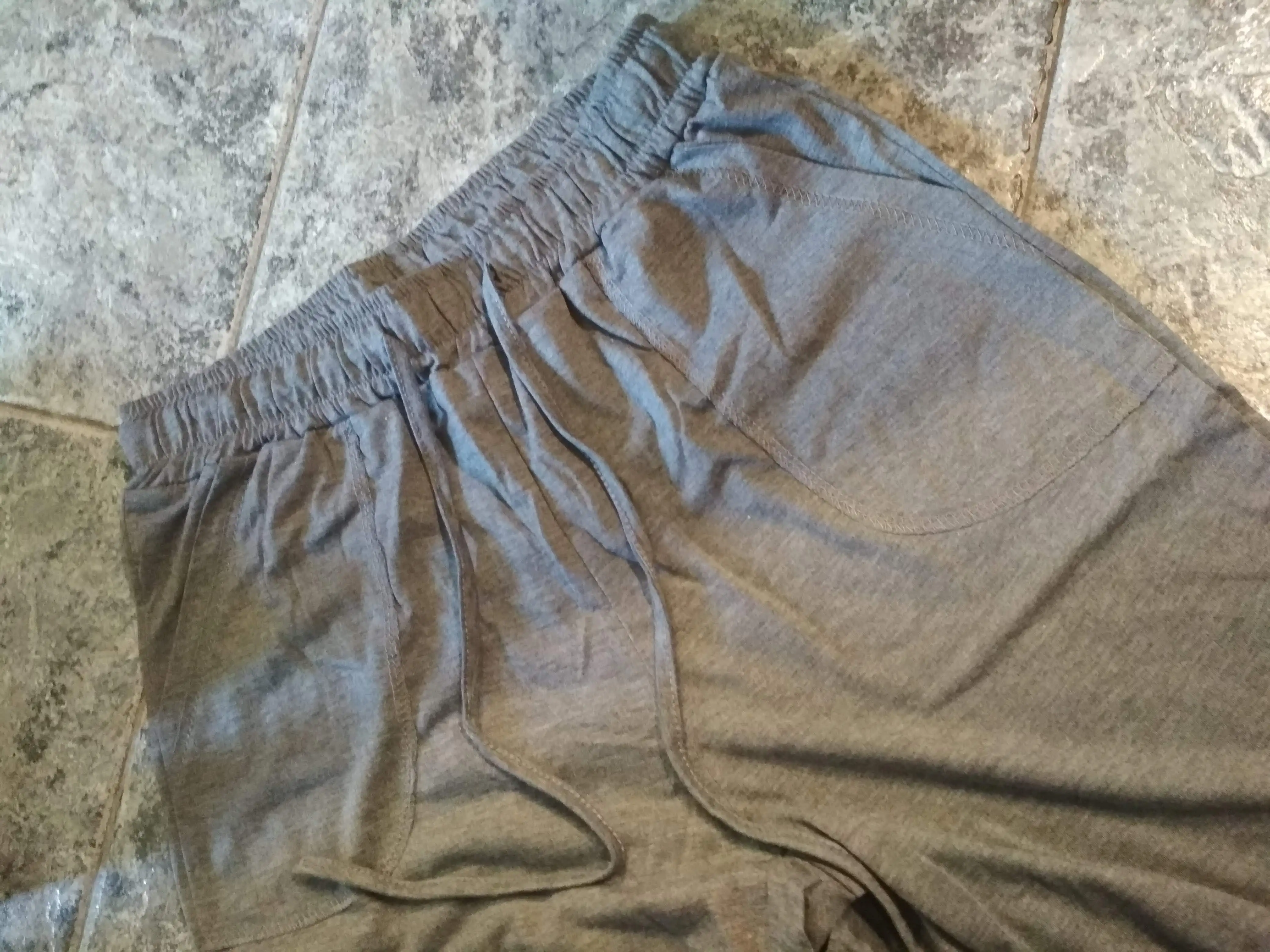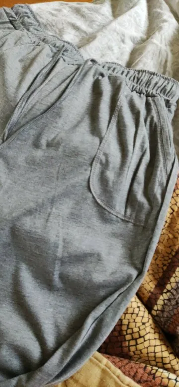 Перепутали цвет - заказывала темно серые, а прислали светло серые. Ткань немного колючая, но не критично, тонкая, на теле не просвечивает (на свет если посмотреть, то как на фото), на свой размер М стоило бы брать L, чтобы не были так по фигуре, были более свободными, а так размер в размер, заниматься удобно, но L, наверное6 получше смотрелась бы. А так вполне неплохие брючки. Надеюсь, от стирок колоться ткань будет меньше, а то по жаре немного это мешает.