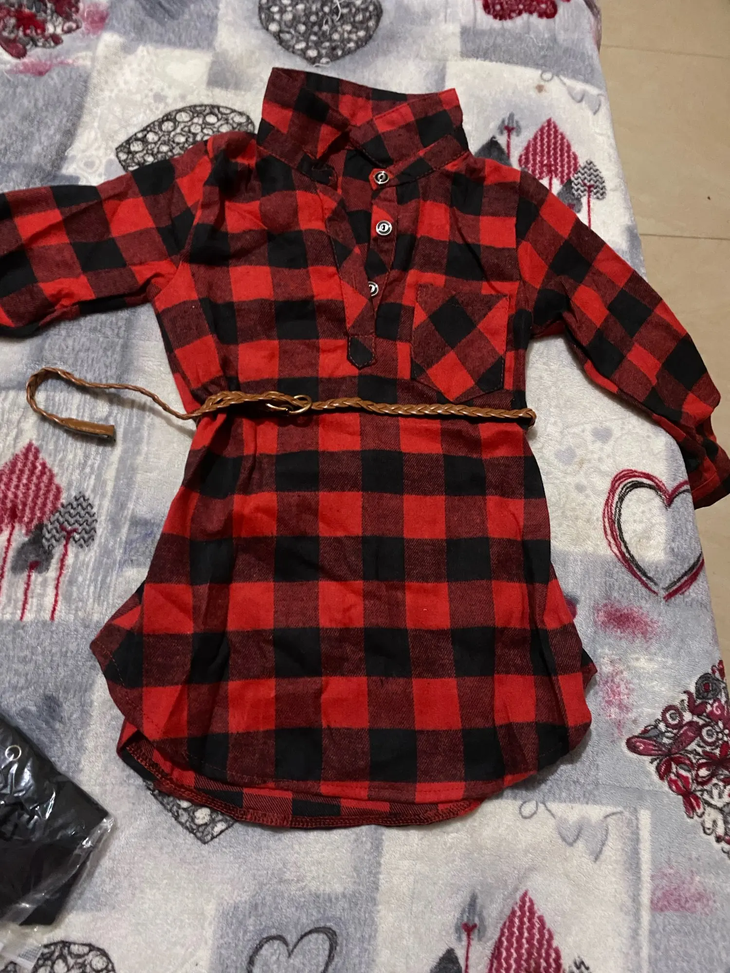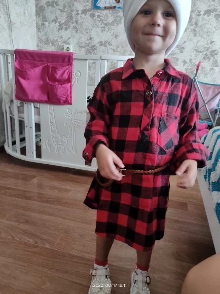 Новинка 2022, рождественское длинное платье-рубашка для маленьких девочек, топы с длинными рукавами, красное прямое платье в клетку по колено + От 0 до 5 лет с поясом