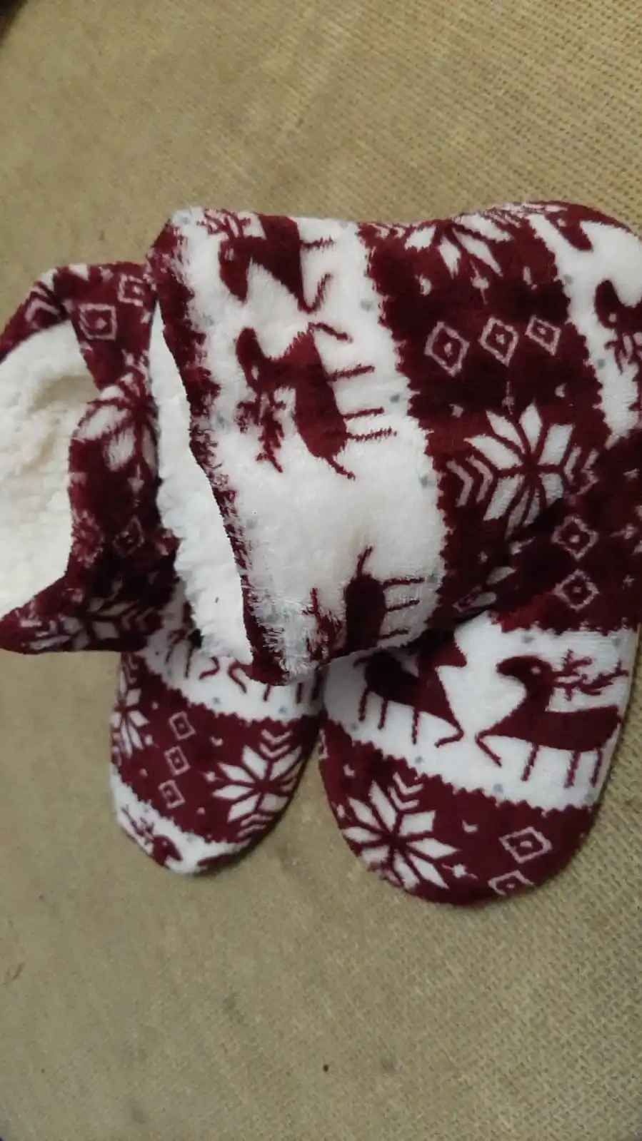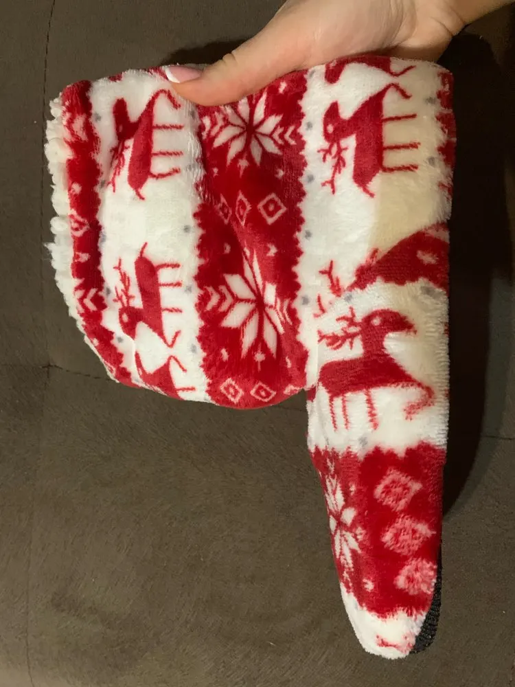 Прикольные носочки-тапочки. Низ обшит тканью водоотталкивающей. Конечно сотрется, но на полгодика, зимний период, должно хватить. Брала размер Size: 41, но даже такой размер по факту стелька внутри 24,5 см. Да их можно одеть на стопу 25.5, но все же.