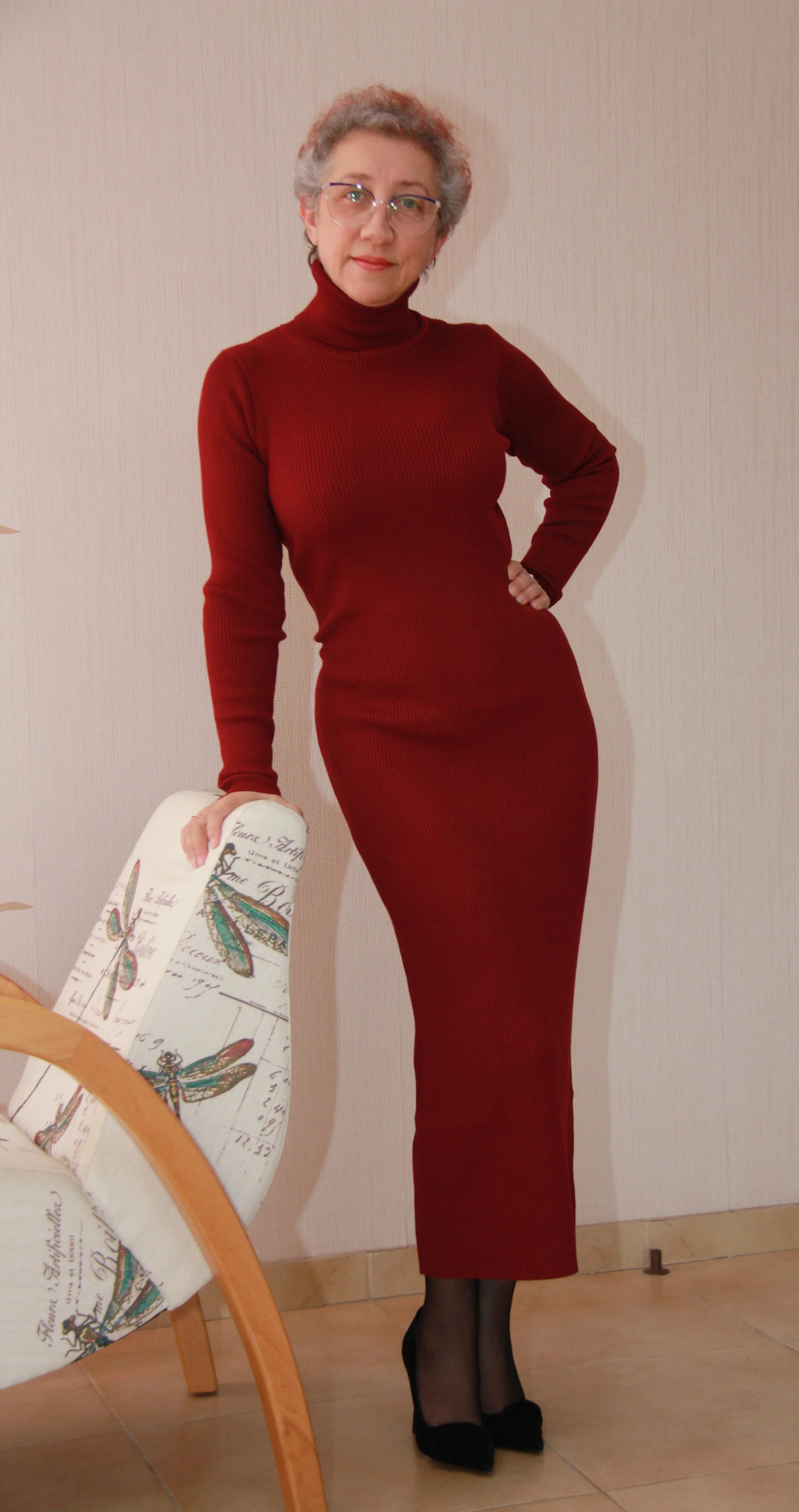 Очень довольна. Качество на высоте. Цвет очень красивый благородный. 100-80-100 рост 158 xl как на модели, рукава длинноватые, но я так и люблю, можно закатать. Однозначно рекомендую, супер!!!
