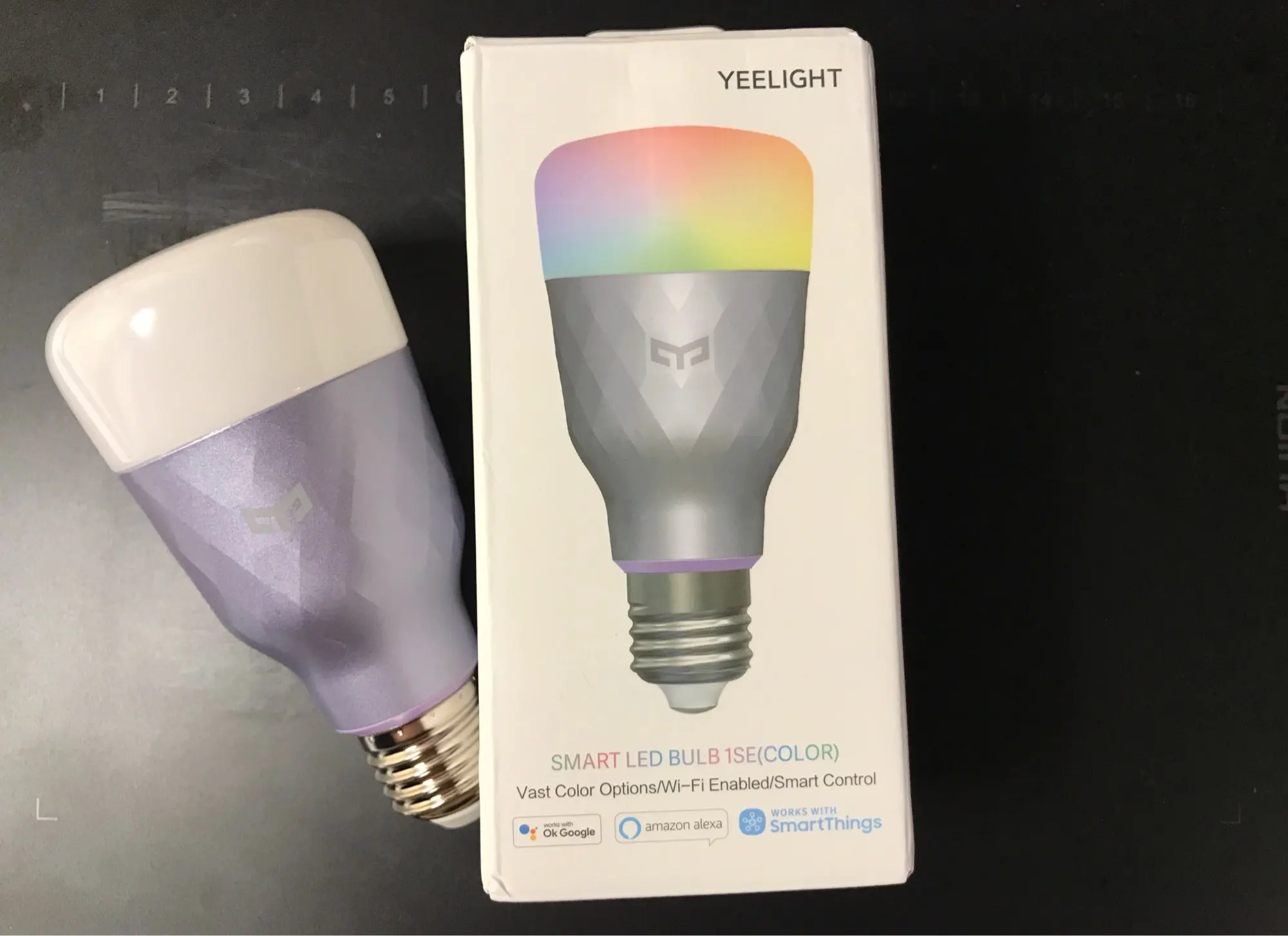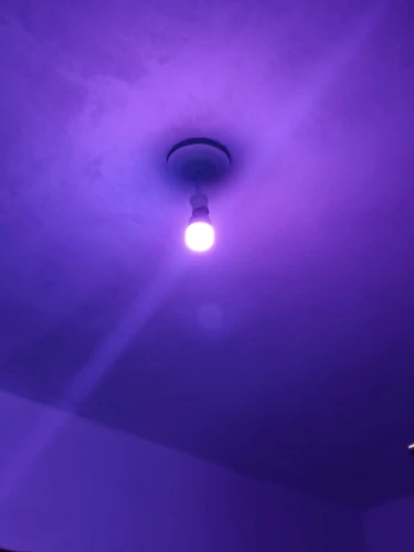 Отлиная лампа. Уже брал у Yeelight умный светильник, поэтому есть доверие к этой компании. На фото "белый нейтральный" самой низкой яркости. Если выставить яркость на максимум, света будет достаточно для комфортной работы в темном помещении (в качестве настольной лампы). Для освещения большой комнаты одной лампы будет маловато. В приложении Yeelight есть отдельные закладки для белого и цветного света, что очень удобно. ВАЖНО! Лампа увесистая. Возможно на некоторых светильниках будет перевешивать.