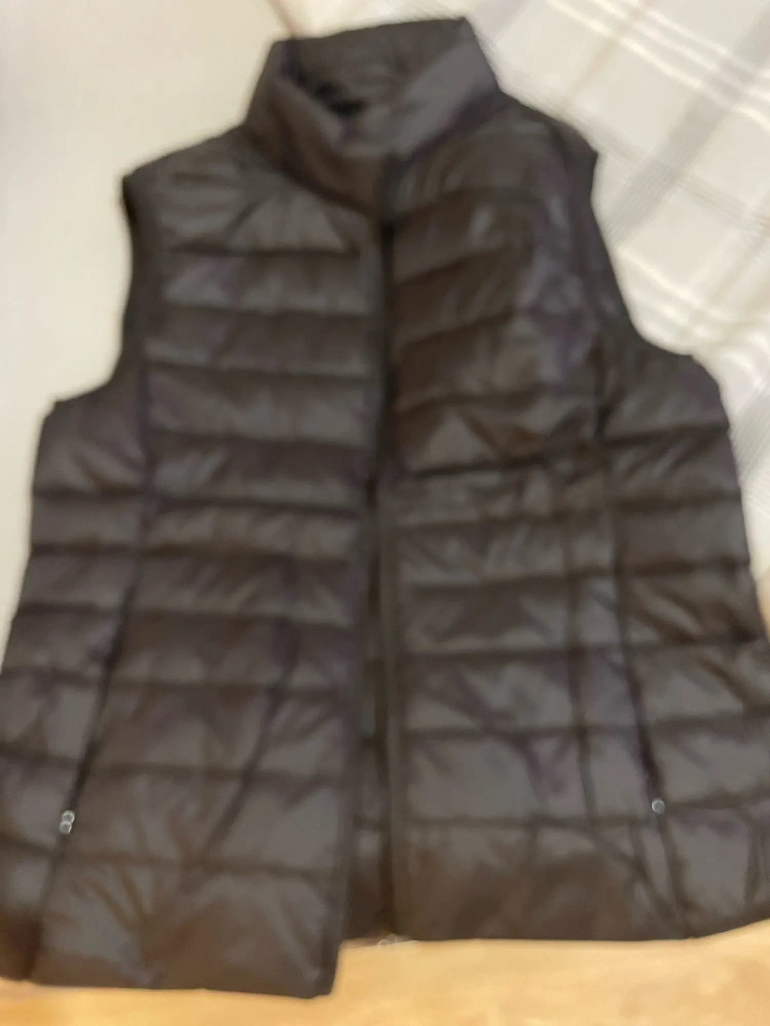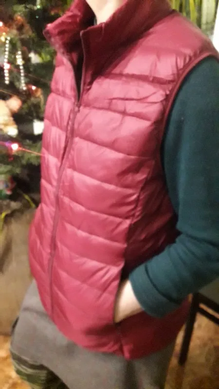 все точно и красиво, насыщенный бордовый цвет. заказала самый большой размер, он мне в обтяг, но товаром довольна. есть сумка-пакет для жилетки, рядом с молнией торчат нитки - это косяк конечно)) продавец положил в подарочек очень милую резиночку, спасибо большое)) доставка почти месяц))
