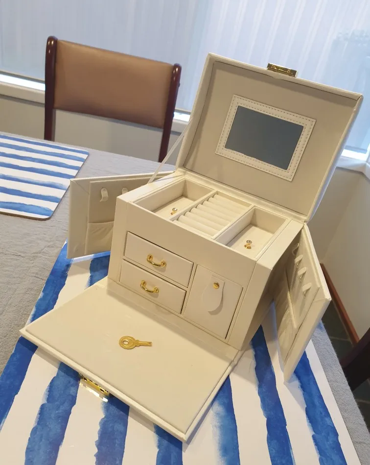 Новинка 2022, коробка для хранения ювелирных изделий, переносной замок большой емкости с зеркалом для хранения ювелирных изделий, серег, ожерелий, колец, демонстрация ювелирных изделий