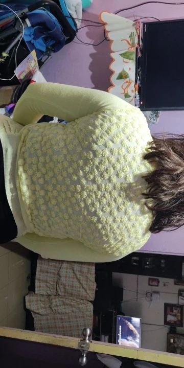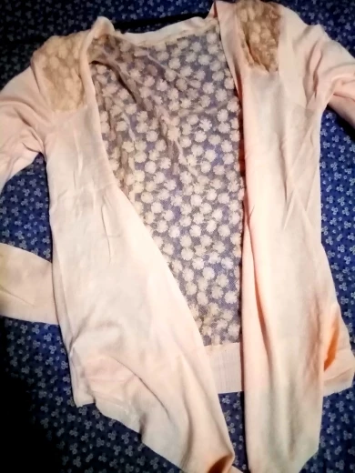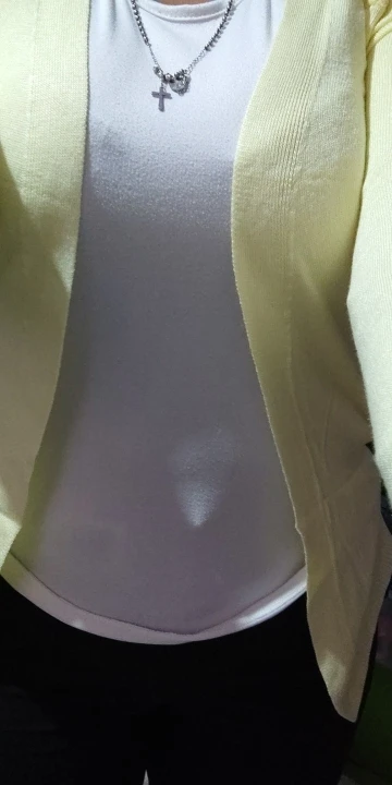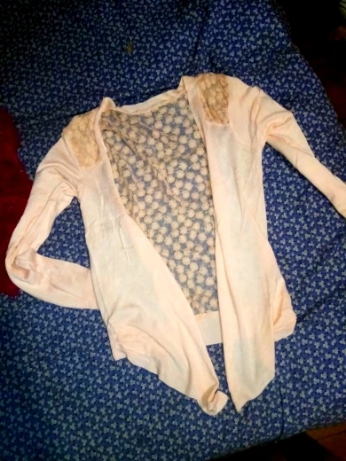 кофточка оказалась маловата, к тому же она без пуговиц, смотрится как то нелепо