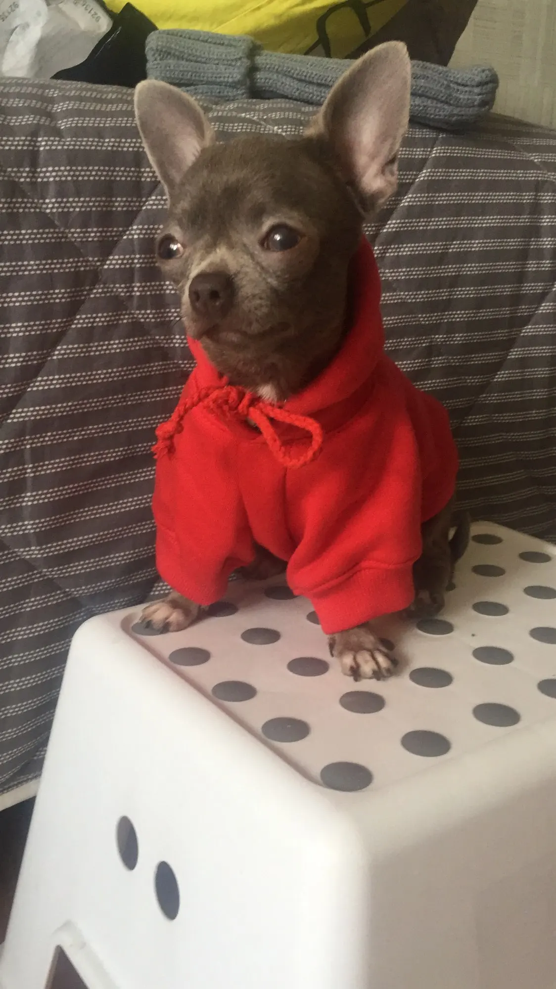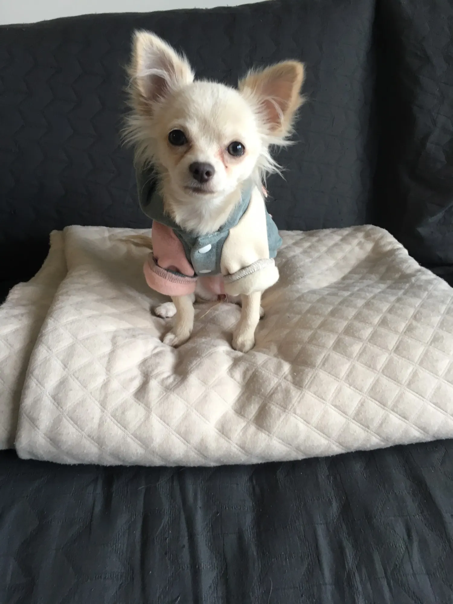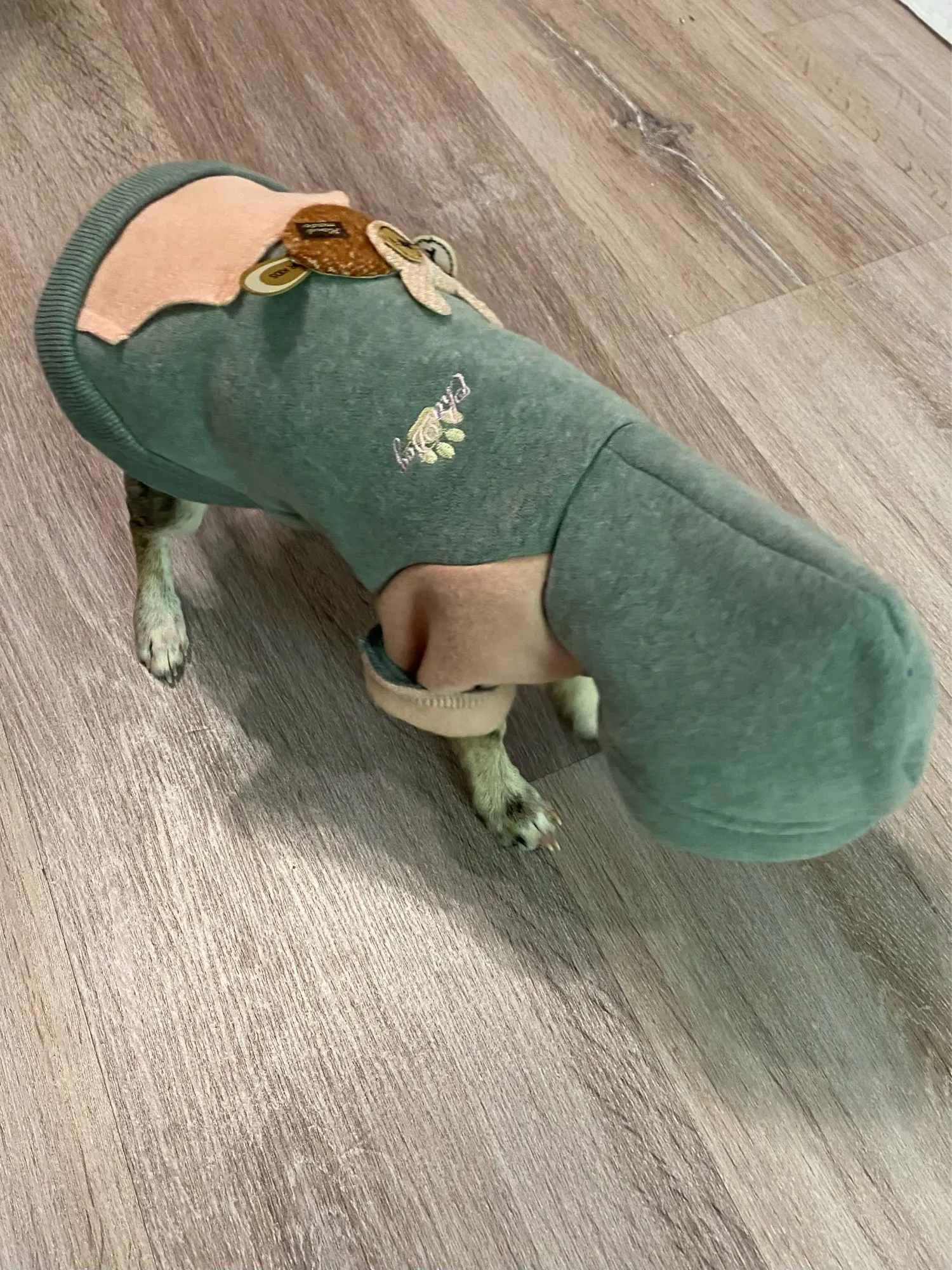 Товар отличного качества! Хлопок, с изнанки флисовый начесик, длина по спинке от шва с капюшоном 24 см., по груди 18 см., полностью соответствует фото. На чихуа 2,4 кг (по спине 27-28 см.) заказала размер S - сел идеально! Немного оверсайз)) , собаке удобно двигаться! Ориентировалась на предыдущие отзывы (действительно немного большемерит, возможно потому, что свободная). Очень рекомендую товар и продавца. НЕ удержалась и заказала еще одну в зеленом цвете! ))) Жду!) До Омска посылка дошла за 2,5 недели.
