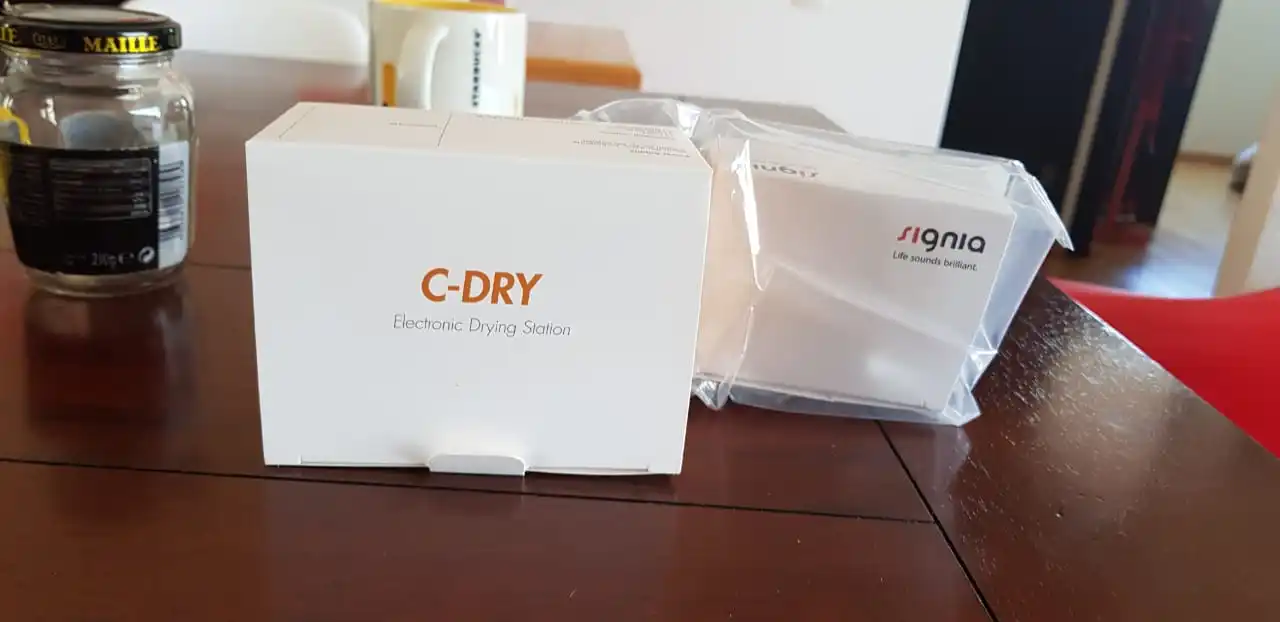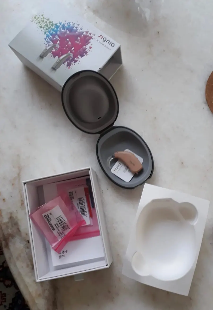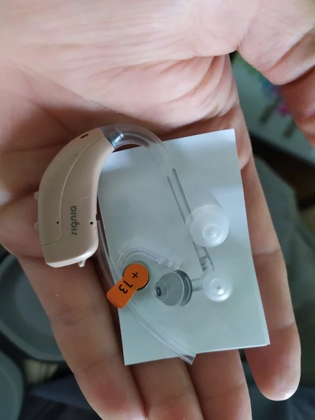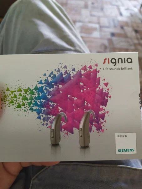 Пришёл в оригинальной упаковке с логотипом signia. Комплекте оригинальные аксессуары и две химические батарейки. Звук достаточно чистый без шумов. Регулировка многоступенчатая. Вообщем аппарат не плох за свои деньги.