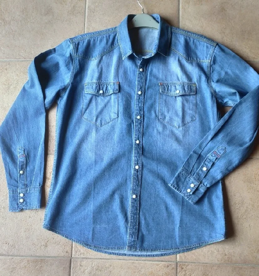 Новинка осени 2022, Мужская джинсовая рубашка с длинным рукавом, модная повседневная синяя приталенная хлопковая джинсовая рубашка, Мужская ...