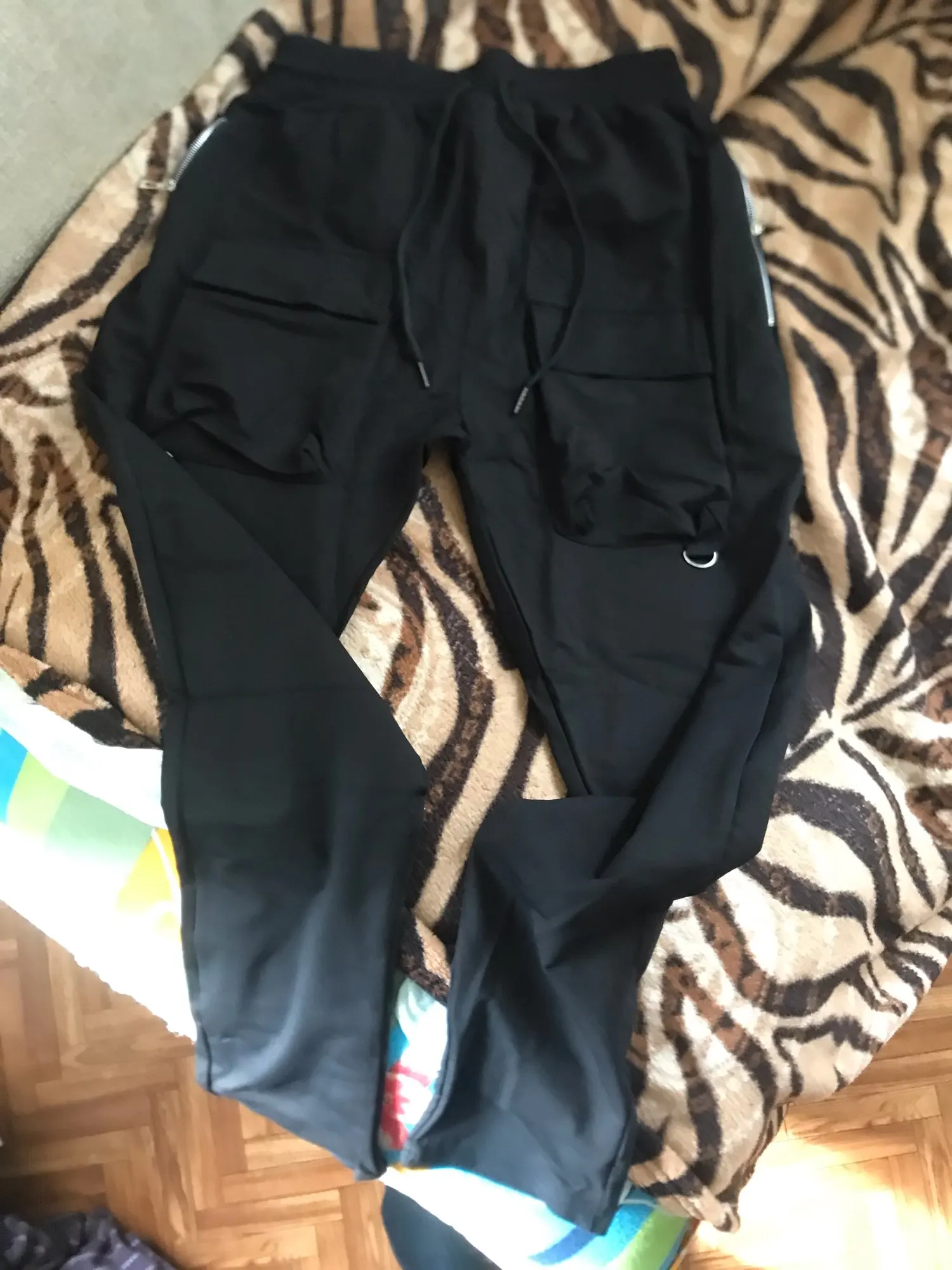 Быстро пришёл заказ, штаны отличные, мне не понравились сбоку эти верёвки по качеству очень такие себе, но впринципе их можно поменять. За 1к очень даже хорошо)