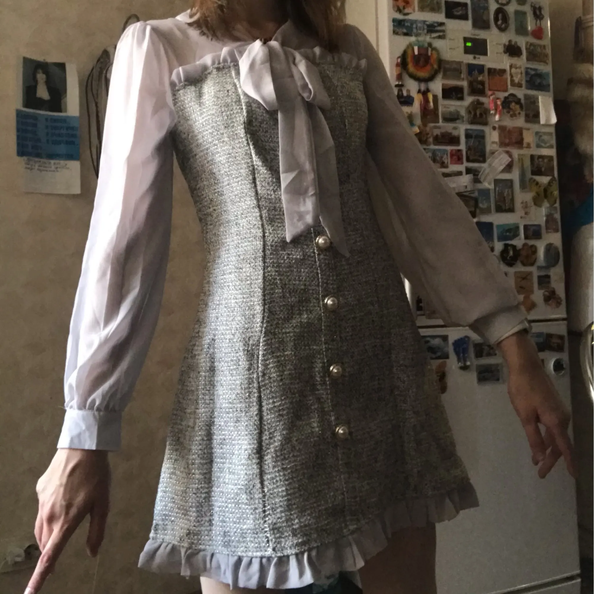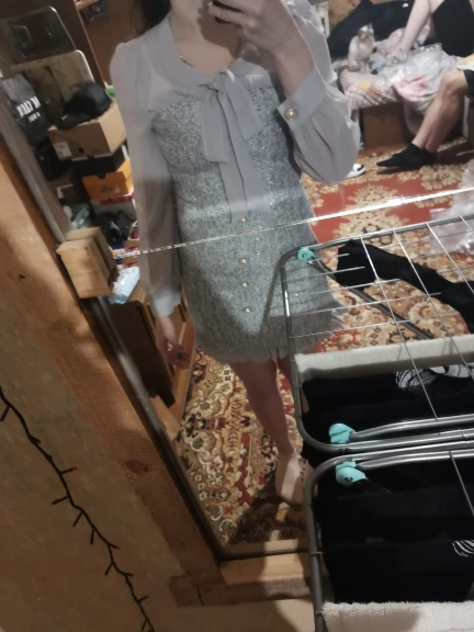 Новинка в винтажном стиле; Сезон весна; Пикантные прозрачные лоскутным шитьем из шифона для девочек твидовые мини-платье для женщин с лентой с бантом и одним рядом пуговиц вечернее платье с длинным рукавом