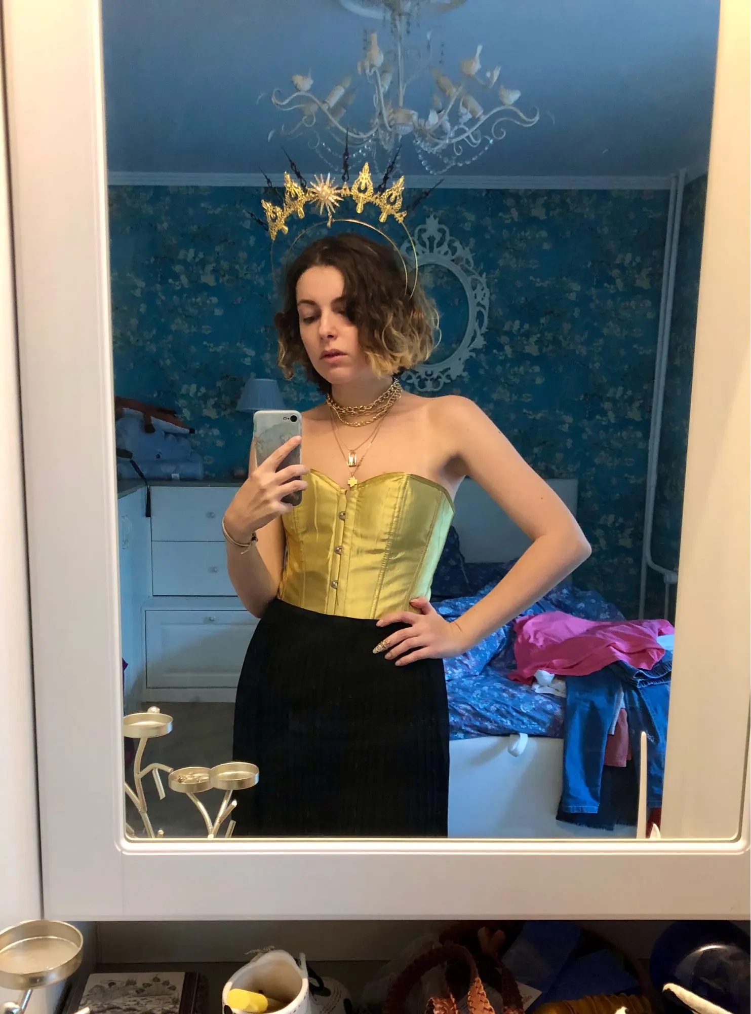 Корсет шикарен. Но на 106 см груди чуть великоват. Вернее сидит спокойно, без сильной затяжки. Что тоже хорошо для долгого ношения (специально брала побольше, у меня много корсетов, в жестких долго не походишь). Пришло быстро и продавец положил подарок - эротические недотрусики)))