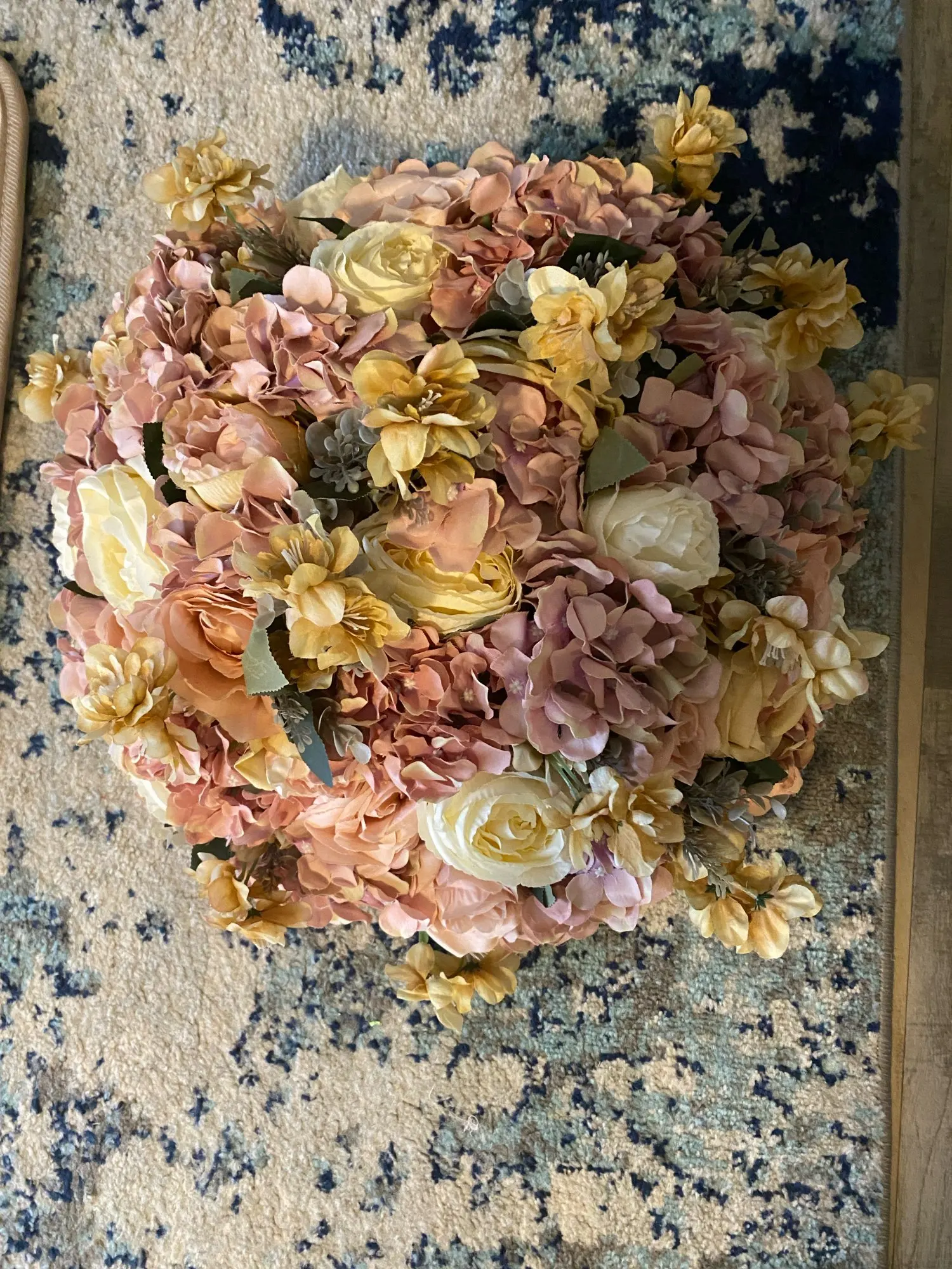 Цветы пришли все мятые. Восстановить невозможно. Один букет лежал на другом - крепко к нему прижат. Часть цветков оторваны. В описании не сказано, что снизу букет прикреплён к подставке из упаковочного материала. Круглая подставка диаметром примерно 20 см. Я предполагал, что букет можно поставить в неглубокую вазу. Но этого нельзя сделать и нигде нет фотографий снизу букета - на чём он стоит. Очень недоволен покупкой.