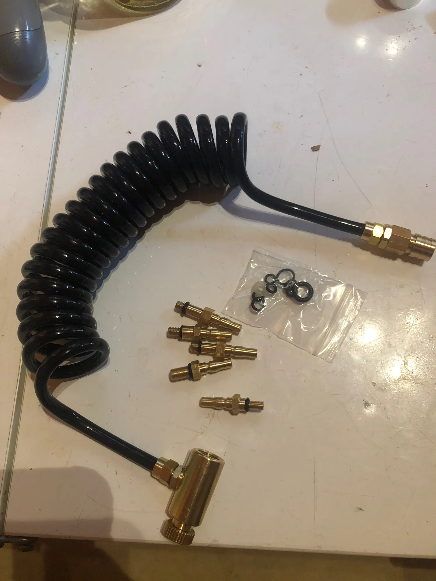Доставка быстрая! Качество отличное! Заказал второй комплект! Чтоб не ссало - штуцер сажать в магазин на резьбовой клей. Из минусов - вентиль полностью выкручивается, в следствии чего, если в системе воздух не стравлен - может отстрелить в неизведанное направление, если закрывая балон его переоткрутите. Рекомендую поставить какие либо метки - риски что бы не переоткрутить.