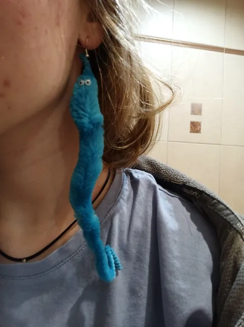Новый очаровательный и веселый удлиненном плюше; Червь, свисающие серьги для женщин, серьги для девочек Личность животных насекомых длинные висячие серьги модные вечерние ювелирные изделия