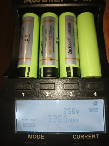 Заказывал 6 аккумуляторов.Надо отдать должное продавцу! Товар отлично упакован! До этого покупал исключительно аккумуляторы Panasonic NCR18650B,с ними и сравниваю VariCore. Сразу бросается в глаза,что на плюсовой клемме аккумулятора VariCore нет выступа,но по массе аккумуляторы идентичны. Посмотрим,что покажет тест интеллектуальной зарядной системы Kweller X-1900. Аккумуляторы до полного заряда заряжались током 300мА/ч,а разряд их происходил током 250мА/ч. Из четырёх взятых на тест аккумуляторов сфотографировал только два-самой маленькой и самой большой ёмкости. На мой взгляд японские аккумуляторы лучше VariCore,как по ёмкости (3300-3490),так и по количеству циклов заряда.