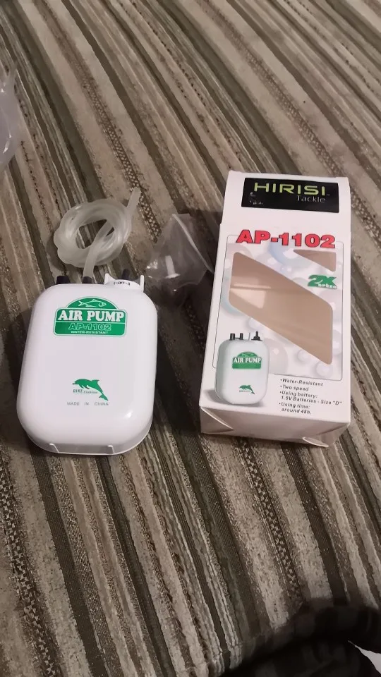 Неудобный размер батарейки, громко работает. Из положительного: отличный дизайн, качественный пластик и два режима работы. Для хранения живца отличная вещь, но для аквариума не годится.