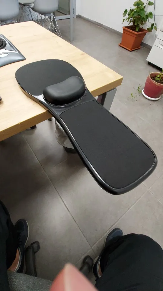 Беру данный подлокотник второй раз.слабое место это пластмассовая резьба при помощи,которой происходит крепление к столу.полотно которым покрыт подлокотник плохо моется,пятна на нем могут остаться.для тех кто много печатает и работает за компом хорошее решение от боли в лучезапястном суставе.при доставке все целое
