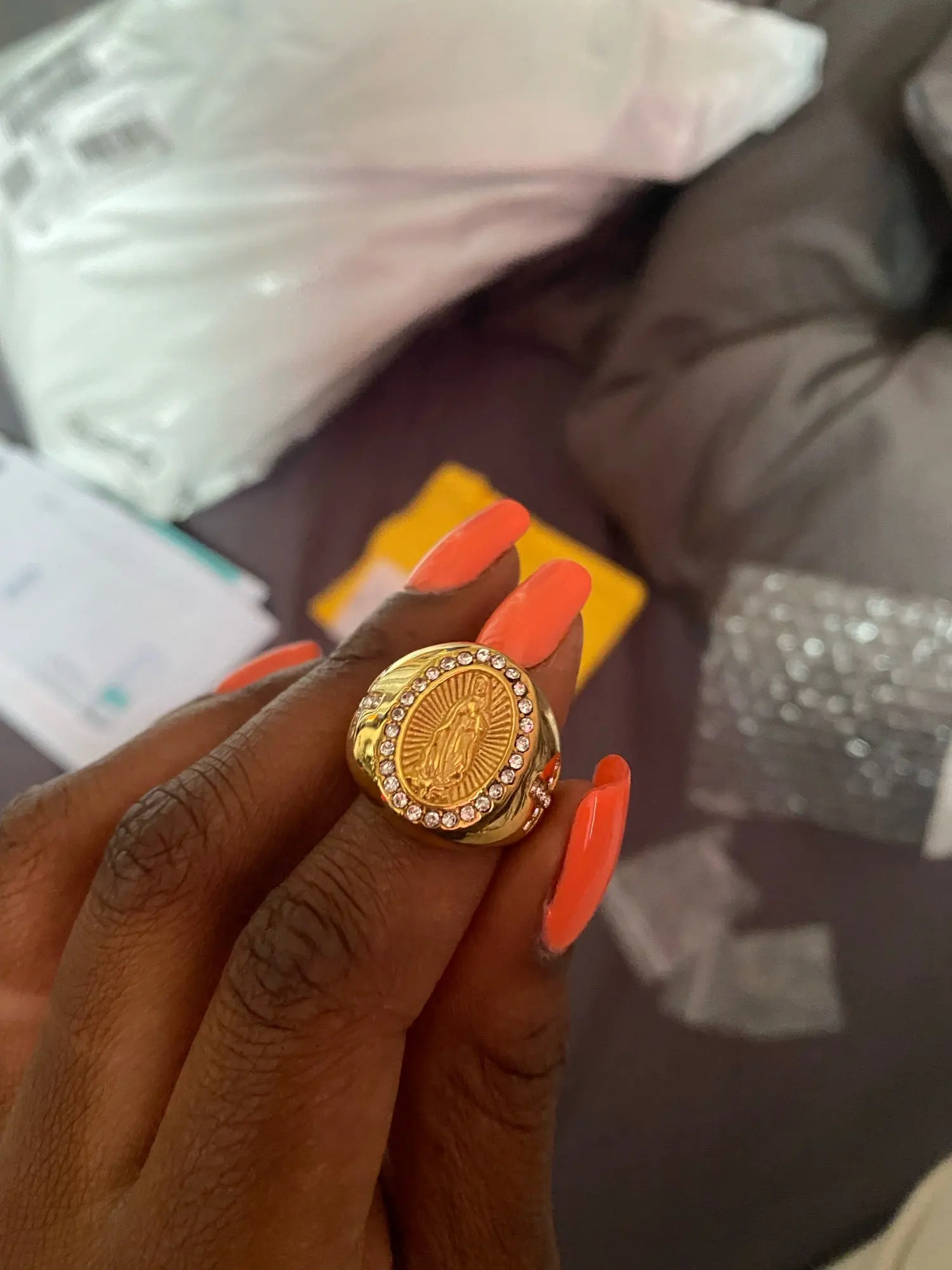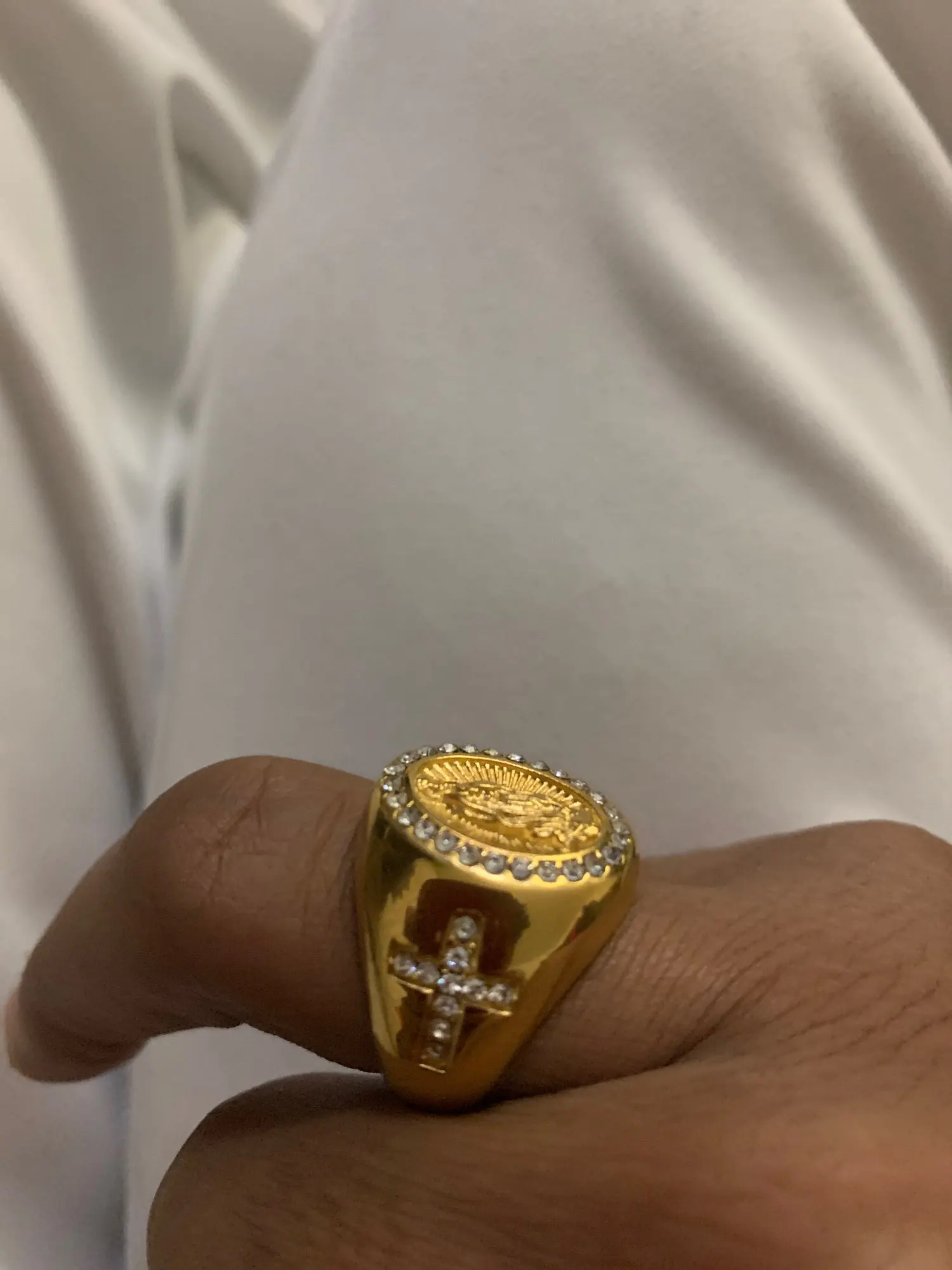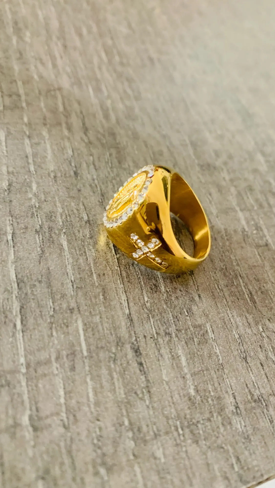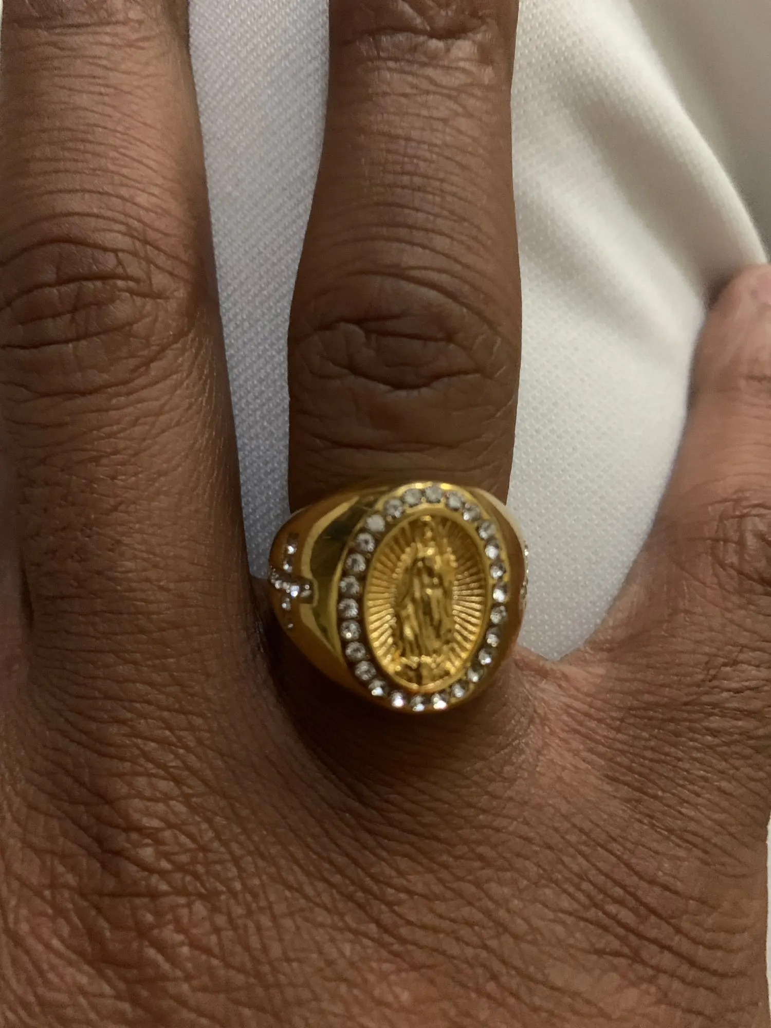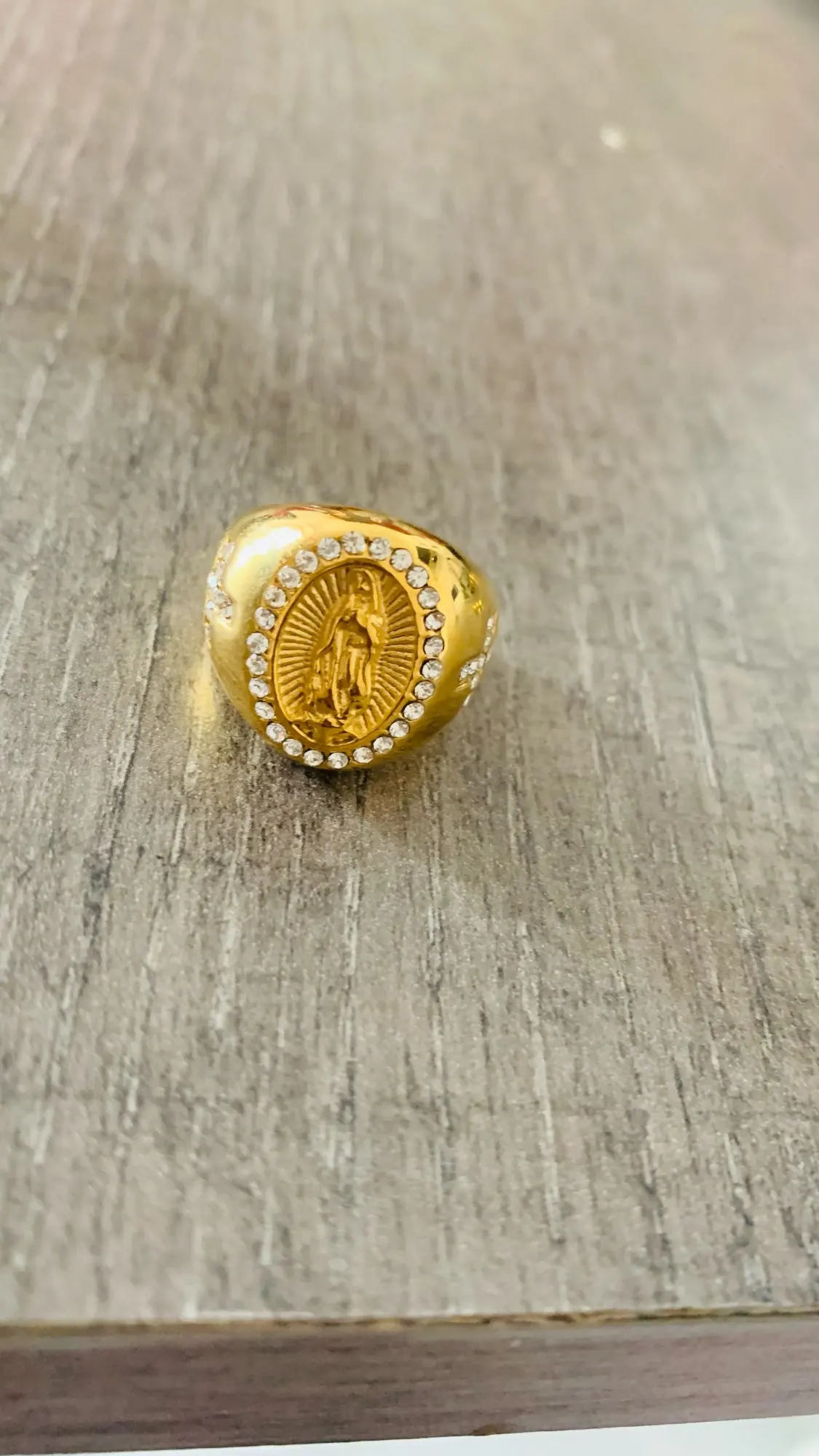 Новое поступление, мужское золотистое кольцо с фианитом размером 7-13 размеров США, богородица Дева Мария Гуадалупе, религиозное кольцо