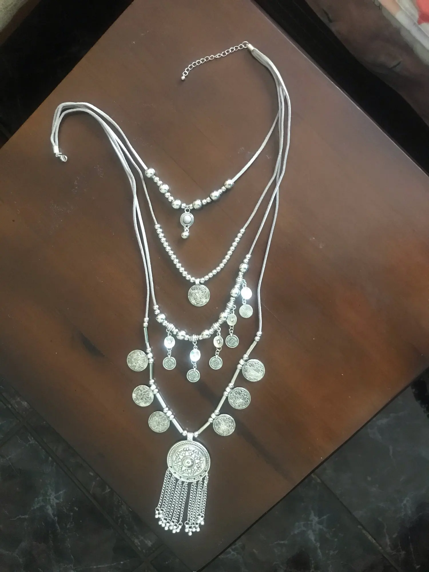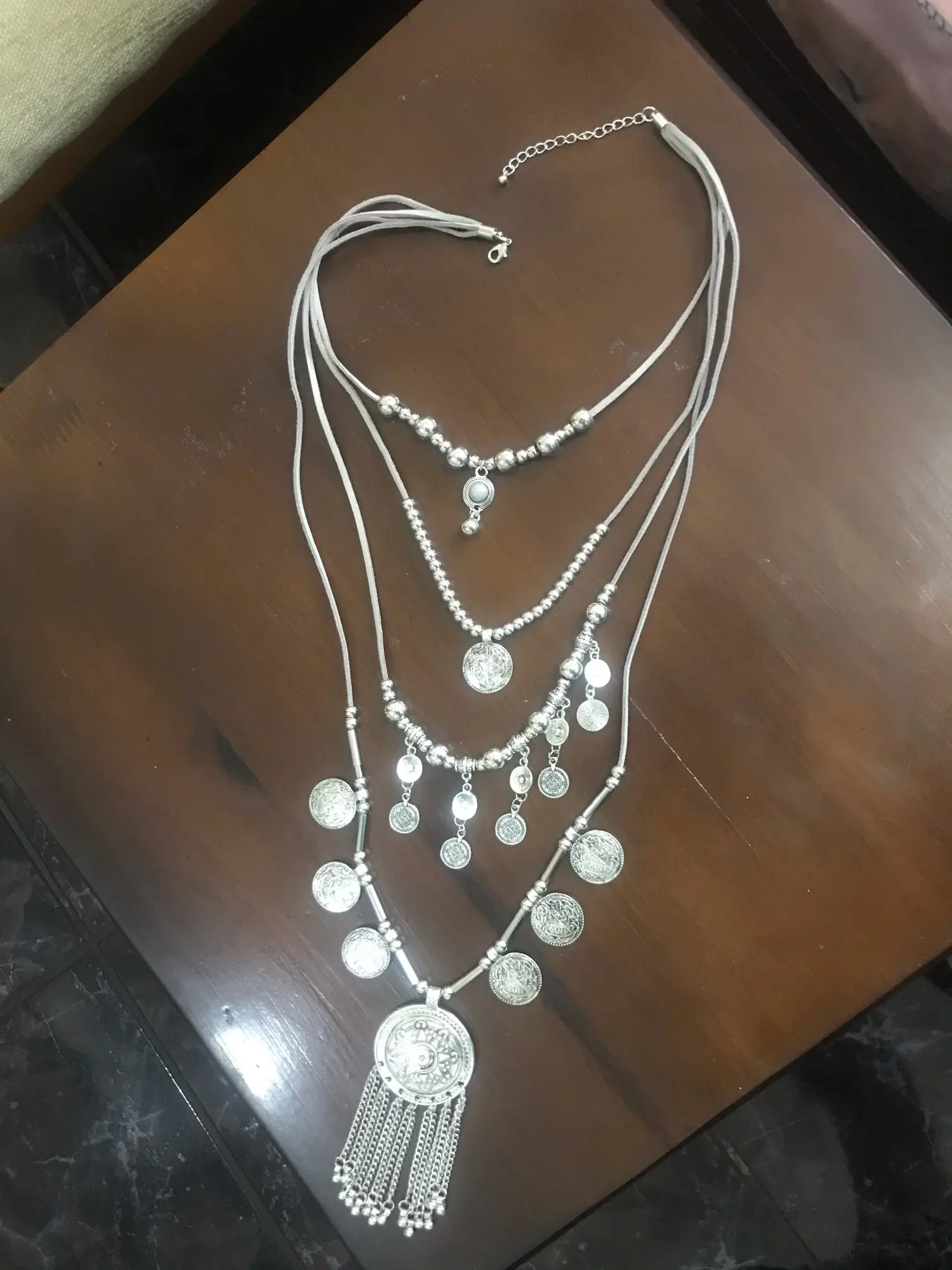 С оценкой я поспешила. Продавец указал состав цинковый сплав, вот только из него в этом ожерелье только круглые подвески. Все остальное "серебро",бусины и трубочки - это пластмасса, которая со временем начнет царапаться и облезать. Но пока что эта штука выглядит просто шикарно