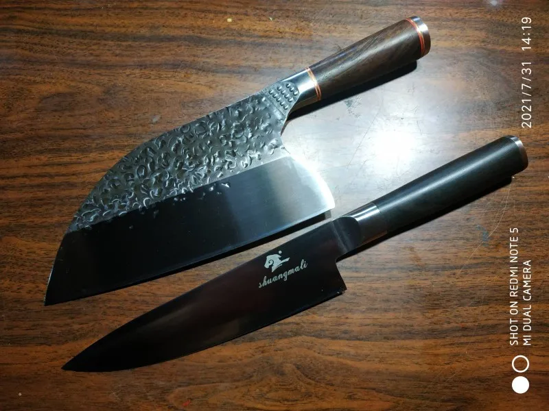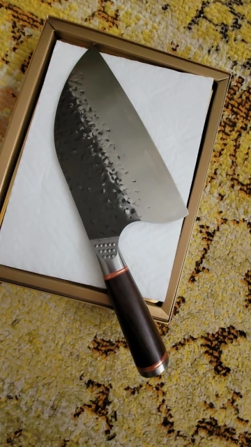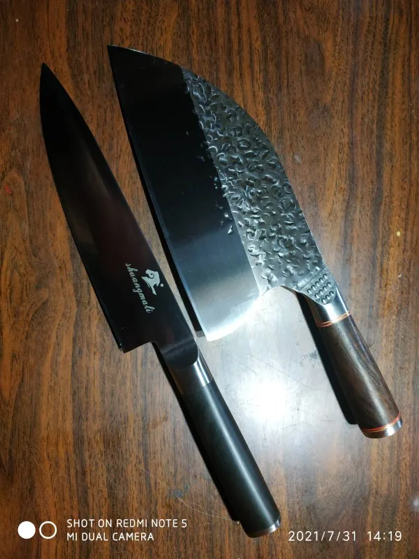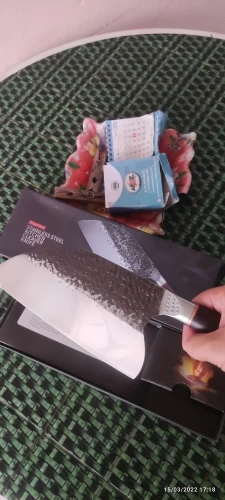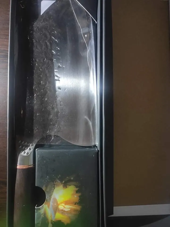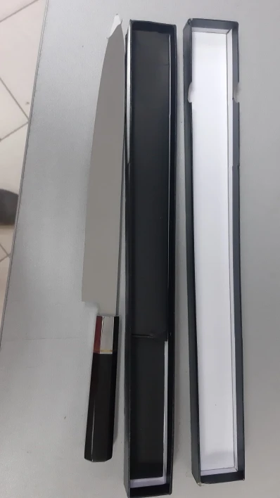 Нож доставили быстро, но мне в руки он попал не сразу! Мне очень не нравится что форма ножа не соответствует форме которую они продают! Обратите внимание на фото на коробке и на сам нож, наверху угол наклона абсолютно другой! Это меня очень расстроило!