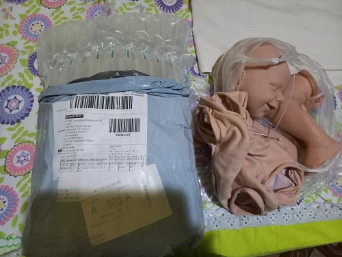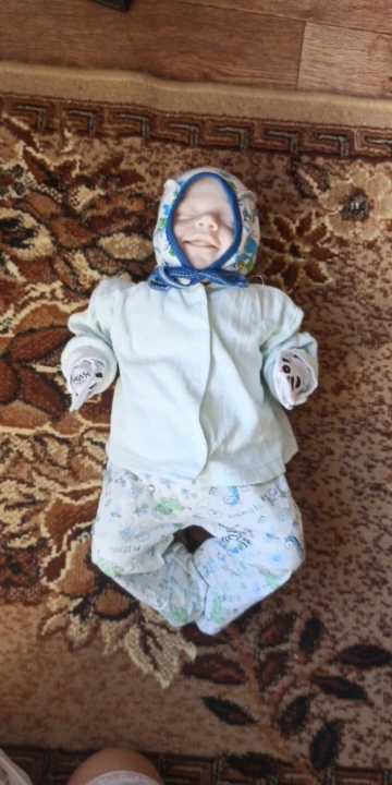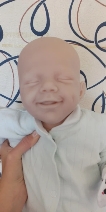 Описание точное. Товар пришел именно тот что на катринке. Доствка быстрая. В Магнитогорск около 15 дней. Брали как маникен для фотографирования вещей для новорожденных. Жена просто в восторге. Не воняет, на фото выглядит гораздо бледнее чем в реале, в реале цвет розоватый.
